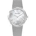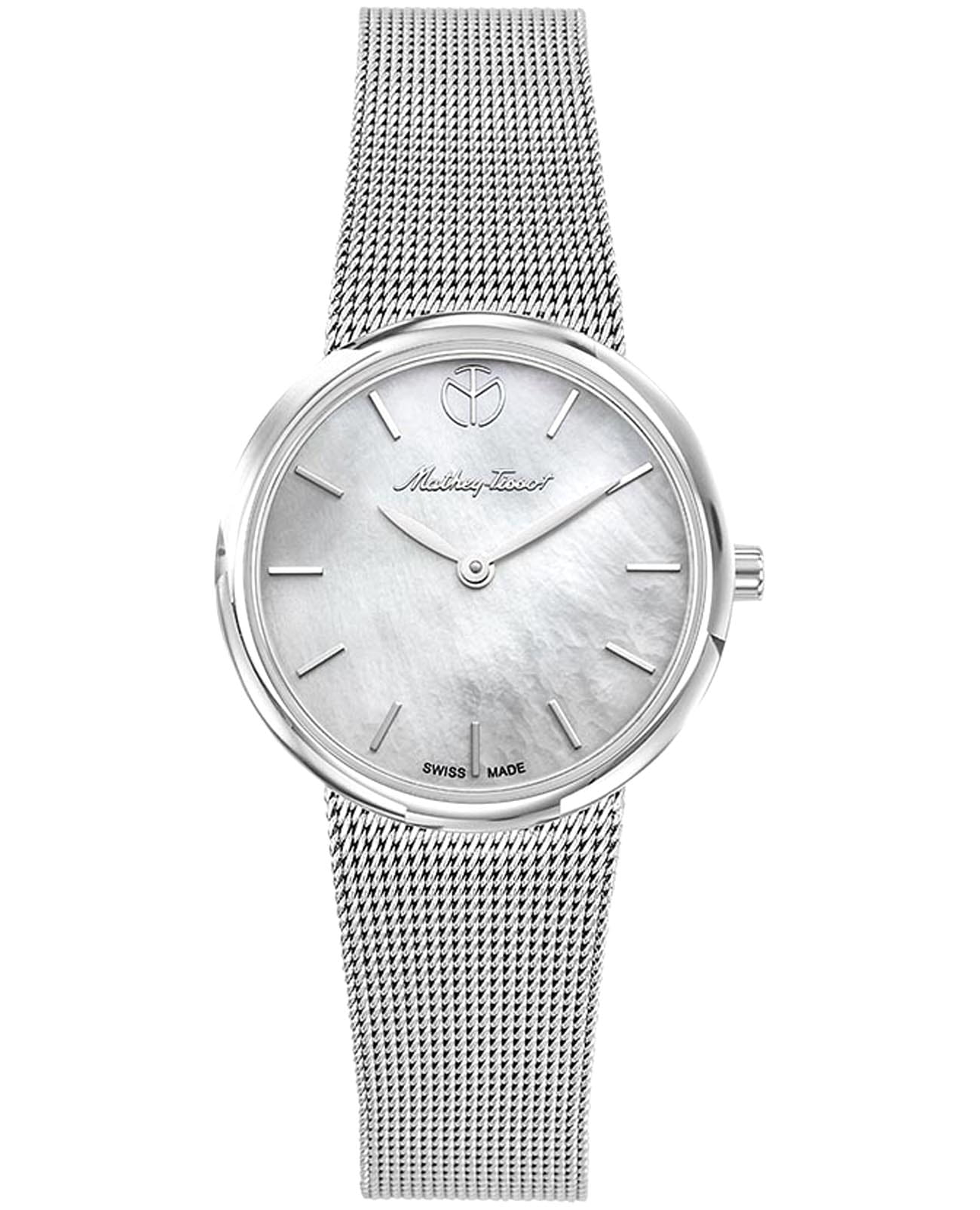 Женские кварцевые часы Mathey-Tissot Milly D403AI — это стильное сочетание элегантности и современного дизайна. Изящный корпус выполнен из нержавеющей стали серебристого цвета, диаметром 30 мм, что придаст образу элегантности и надежности. Изысканный перламутровый циферблат с метками в виде штрихов придает модели особый блеск. Циферблат защищен минеральным стекломМинеральное стеклоМинеральное стекло представляет собой искусственно выращенный минерал кварца. Такое стекло отличается особой устойчивостью к повреждениям и царапинам. Уступает по некоторым качествам сапфировому стеклу. с сапфировым покрытием, обеспечивает устойчивость к царапинам. Часы оснащены надежным кварцевым механизмом. Стальной браслет миланского плетения на раскладном замкеРаскладная застёжкаТакой тип застёжки используется только на браслетах из металла. Она никогда не раскрывается полностью, происходит разделение на 2 и более частей. Раскладывающая застёжка снизит вероятность потери часов к минимуму., гарантирует комфортное и безопасное ношение. Класс водозащиты: 30 метров позволит защитить корпус от случайных брызг или капель дождя. Mathey-Tissot — отличный выбор для тех, кто ценит утонченность и качество.