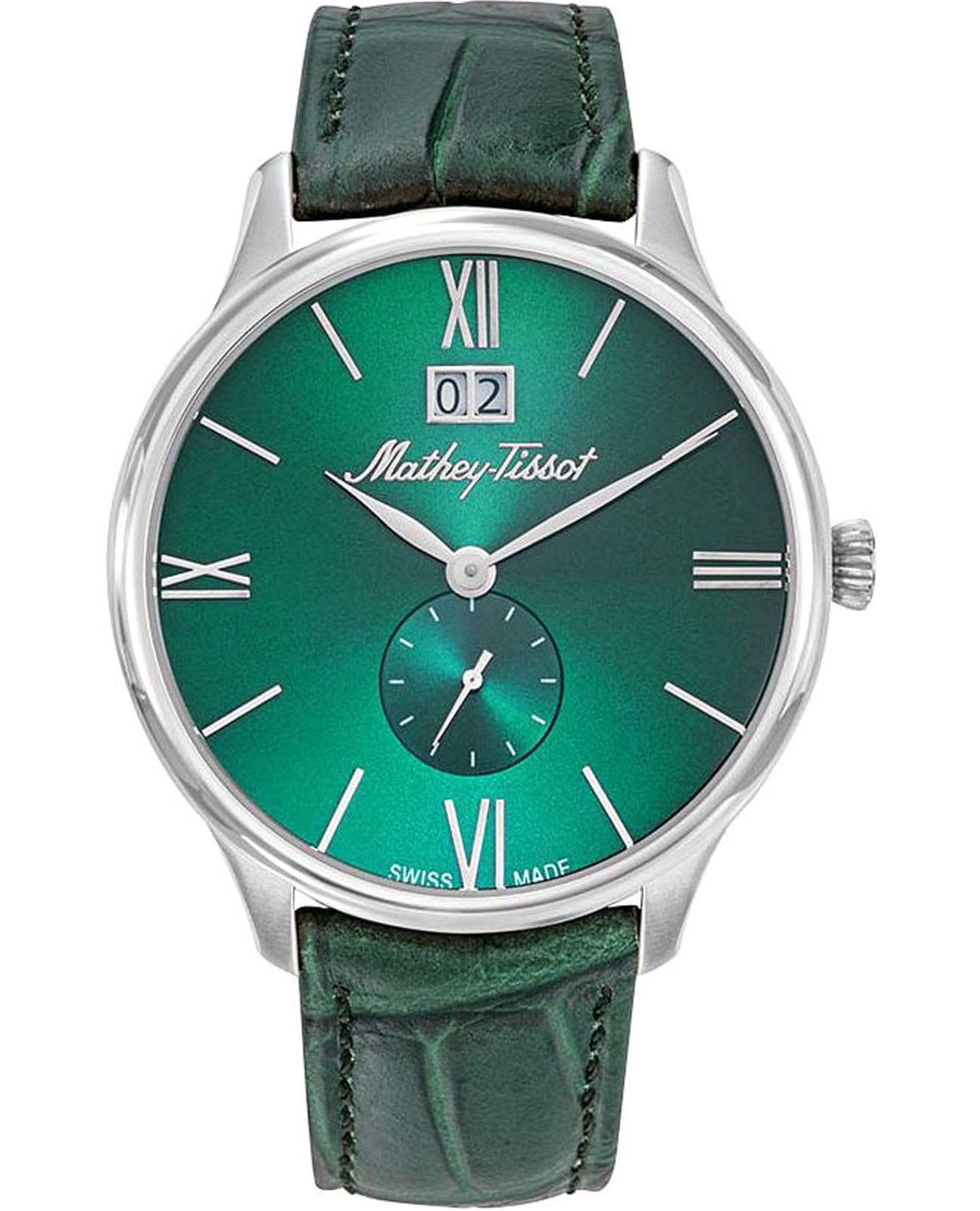 Мужские кварцевые часы Mathey-Tissot Edmond H1886QAV — это стильное сочетание элегантности и современного дизайна. Изящный корпус выполнен из нержавеющей стали, диаметром 42 мм, что придаст образу элегантности и надежности. Изысканный циферблат с метками в виде штрихов и римских цифр придает модели особый блеск. Циферблат защищен минеральным стекломМинеральное стеклоМинеральное стекло представляет собой искусственно выращенный минерал кварца. Такое стекло отличается особой устойчивостью к повреждениям и царапинам. Уступает по некоторым качествам сапфировому стеклу. с сапфировым покрытием, обеспечивает устойчивость к царапинам. Окошко даты находится в положении 12 часов. Кожаный ремешок на застёжке-бабочке с кнопкамиЗастёжка "бабочка"Такой вид застёжки дополняется предохранителями, помогающими избежать случайного раскрытия браслета. Обладают изящным исполнением. , гарантирует комфортное и безопасное ношение. Секундная стрелка вынесена на отдельный циферблат. Рифленая заводная головка. Класс водозащиты: 50 метров позволит защитить корпус от случайных брызг или капель дождя. Mathey-Tissot — отличный выбор для тех, кто ценит утонченность и качество.