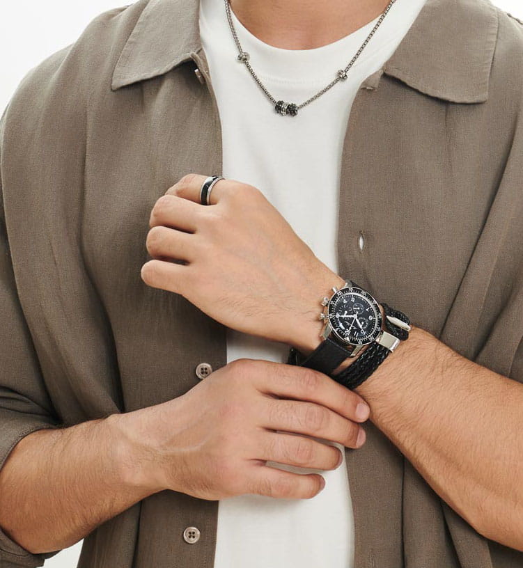 Мужские наручные часы Mathey-Tissot Type 1968 TYPE1968N оснащены механическим механизмом с автоподзаводом, обеспечивающий высокую точность хода и надежность. Элегантный корпус часов выполнен из нержавеющей стали серебристого цвета, что делает их устойчивыми к внешним воздействиям и придает благородный вид. Вращающийся в одном направлении безельБезельВнешний ободок, закрепляющий стекло. В спортивных часах так называется поворотное кольцо с делениями на циферблате, выполняет роль таймера – замеряет отрезки времени на шкале. Неподвижный безель – элемент декора. Однонаправленно вращающийся безель на дайверских часах позволяет фиксировать моменты погружения и выныривания на поверхность. с PVD-покрытиемPVDУльтратонкое покрытие наносится в технике вакуумного напыления, сочетает в себе нитрид титана особой прочности со слоем золота или оксида хрома. Несёт в себе декоративную или защитную функцию. черного цвета. Циферблат украшен классическими стрелками и метками с люминесцентным покрытиемЛюминесцентное покрытиеПозволяет считывать показания времени в темноте. Производители наносят на стрелки, часовые индексы, безель или поверхность циферблата светонакопительный состав, дающий холодное свечение., гармонично дополняющим общий дизайн модели. Для защиты циферблата используется минеральное стеклоМинеральное стеклоМинеральное стекло представляет собой искусственно выращенный минерал кварца. Такое стекло отличается особой устойчивостью к повреждениям и царапинам. Уступает по некоторым качествам сапфировому стеклу. с сапфировым покрытием, устойчивое к царапинам и механическим повреждениям. Корпус имеет круглую форму диаметром 41 мм, что делает часы заметными и подходящими. Браслет из кожи на застёжке-бабочке с кнопкамиЗастёжка "бабочка"Такой вид застёжки дополняется предохранителями, помогающими избежать случайного раскрытия браслета. Обладают изящным исполнением. , обеспечивающим комфортное и безопасное ношение. Модель оснащена функцией хронографаХронографФункция позволяет измерять отрезки времени с особой точностью: часы, минуты, секунды. Верным признаком хронографа является наличие на циферблате 3 дополнительных окошек-счётчиков. с секундомеромСекундомерСекундоме́р — прибор, способный измерять интервалы времени с точностью до долей секунды.. Часы обладают водонепроницаемостью до 50 метров (5 АТМ), что позволяет использовать их в повседневной жизни, включая контакт с водой при мытье рук или дожде. Эти часы станут идеальным выбором для мужчин, ценящих стиль, качество и функциональность.