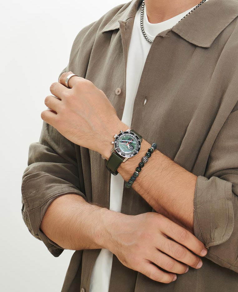 Мужские наручные часы Mathey-Tissot Type 1968 TYPE1968VE оснащены механическим механизмом с автоподзаводом, обеспечивающий высокую точность хода и надежность. Элегантный корпус часов выполнен из нержавеющей стали серебристого цвета, что делает их устойчивыми к внешним воздействиям и придает благородный вид. Вращающийся в одном направлении безельБезельВнешний ободок, закрепляющий стекло. В спортивных часах так называется поворотное кольцо с делениями на циферблате, выполняет роль таймера – замеряет отрезки времени на шкале. Неподвижный безель – элемент декора. Однонаправленно вращающийся безель на дайверских часах позволяет фиксировать моменты погружения и выныривания на поверхность. с PVD-покрытиемPVDУльтратонкое покрытие наносится в технике вакуумного напыления, сочетает в себе нитрид титана особой прочности со слоем золота или оксида хрома. Несёт в себе декоративную или защитную функцию. черного цвета. Циферблат украшен классическими стрелками и метками с люминесцентным покрытиемЛюминесцентное покрытиеПозволяет считывать показания времени в темноте. Производители наносят на стрелки, часовые индексы, безель или поверхность циферблата светонакопительный состав, дающий холодное свечение., гармонично дополняющим общий дизайн модели. Для защиты циферблата используется минеральное стеклоМинеральное стеклоМинеральное стекло представляет собой искусственно выращенный минерал кварца. Такое стекло отличается особой устойчивостью к повреждениям и царапинам. Уступает по некоторым качествам сапфировому стеклу. с сапфировым покрытием, устойчивое к царапинам и механическим повреждениям. Корпус имеет круглую форму диаметром 41 мм, что делает часы заметными и подходящими. Браслет из кожи на застёжке-бабочке с кнопкамиЗастёжка "бабочка"Такой вид застёжки дополняется предохранителями, помогающими избежать случайного раскрытия браслета. Обладают изящным исполнением. , обеспечивающим комфортное и безопасное ношение. Модель оснащена функцией хронографаХронографФункция позволяет измерять отрезки времени с особой точностью: часы, минуты, секунды. Верным признаком хронографа является наличие на циферблате 3 дополнительных окошек-счётчиков. с секундомеромСекундомерСекундоме́р — прибор, способный измерять интервалы времени с точностью до долей секунды.. Часы обладают водонепроницаемостью до 50 метров (5 АТМ), что позволяет использовать их в повседневной жизни, включая контакт с водой при мытье рук или дожде. Эти часы станут идеальным выбором для мужчин, ценящих стиль, качество и функциональность.