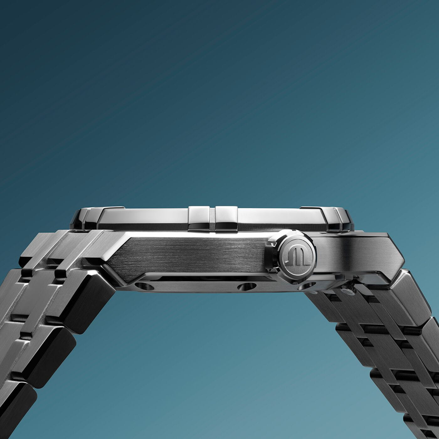 Мужские швейцарские механические часы с автоподзаводом Maurice Lacroix Aikon Automatic Limited Summer Edition 39 mm AI6007-SS00F-431-C, механический механизм (автоматический калибр) с высокой точностью. Сапфировое стеклоСапфировое стеклоПрочный и надёжный материал из кристалла сапфира синтетического происхождения, характеризующийся особой твёрдостью и устойчивостью к царапинам и повреждениям. устойчивое к появлению царапин, обладающее высокой прозрачностью. Корпус часов изготовлен из нержавеющей стали. Стрелки и метки с люминесцентным покрытиемЛюминесцентное покрытиеПозволяет считывать показания времени в темноте. Производители наносят на стрелки, часовые индексы, безель или поверхность циферблата светонакопительный состав, дающий холодное свечение.. Водозащита: 200 метров, позволит плавать, нырять и заниматься другими водными видами спорта. Стальной браслет на застёжке-бабочке с кнопкамиЗастёжка "бабочка"Такой вид застёжки дополняется предохранителями, помогающими избежать случайного раскрытия браслета. Обладают изящным исполнением. .