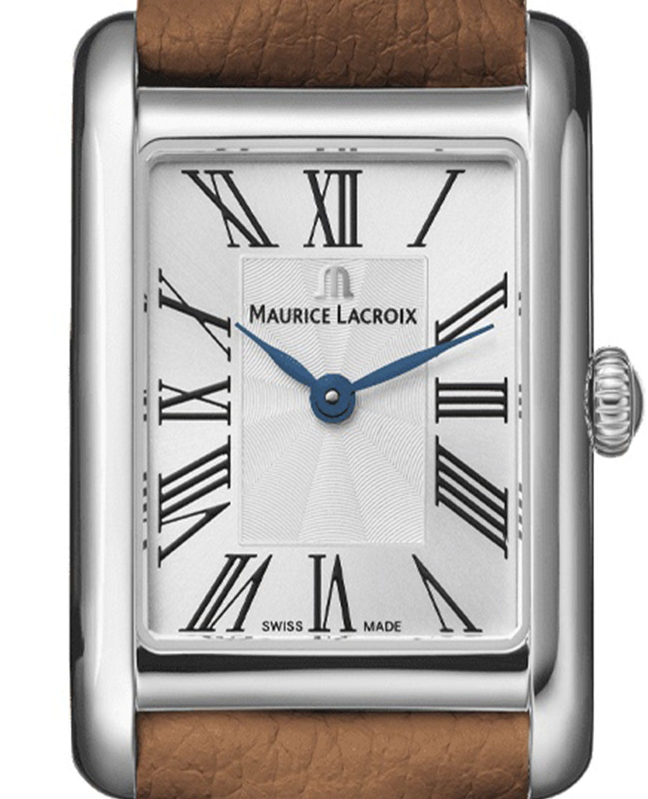 Женские кварцевые часы Maurice Lacroix FIABA — это изысканный аксессуар, вдохновлённый сказками и создающий образ элегантной современной женщины. Модель выполнена в прямоугольной форме из нержавеющей стали с размерами 24x34 мм и толщиной 6,5 мм, что делает её утончённой и лаконичной. Циферблат серебристого цвета дополнен центральным рисунком «флинже» (flinqué), придающим ему глубину и роскошь. Римские цифры черного цвета и стрелки синего оттенка подчёркивают изысканность дизайна. Защиту механизма обеспечивает сапфировое стеклоСапфировое стеклоПрочный и надёжный материал из кристалла сапфира синтетического происхождения, характеризующийся особой твёрдостью и устойчивостью к царапинам и повреждениям. с двусторонним антибликовым покрытиемАнтибликовое покрытиеСлой оксида металла в 0,13-0,3 микрон, благодаря которому стекло часов не бликует и не отражает свет. Антибликовое покрытие уменьшает отражение света в 10 раз, обеспечивая отличную читаемость показателей циферблата., устойчивым к повреждениям. Часы оснащены кварцевым механизмом, обеспечивающим точную работу и минимальное обслуживание. Браслет из коричневой кожи шириной 18 мм оснащён стандартной застёжкой из нержавеющей стали, обеспечивающей комфорт и надёжную фиксацию на запястье. Система быстрой замены ремешка позволяет легко менять его по желанию. Водонепроницаемость позволяет использовать модель при мытье рук или под лёгким дождём. Гарантия 2 года подтверждает качество и долговечность изделия. Эти часы станут универсальным аксессуаром для тех, кто ценит сочетание стиля, функциональности и швейцарского мастерства — идеальный выбор для вечерних выходов и торжественных случаев.