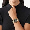 Женские американские часы-хронографХронографФункция позволяет измерять отрезки времени с особой точностью: часы, минуты, секунды. Верным признаком хронографа является наличие на циферблате 3 дополнительных окошек-счётчиков. с секундомеромСекундомерСекундоме́р — прибор, способный измерять интервалы времени с точностью до долей секунды. и с минеральным стекломМинеральное стеклоМинеральное стекло представляет собой искусственно выращенный минерал кварца. Такое стекло отличается особой устойчивостью к повреждениям и царапинам. Уступает по некоторым качествам сапфировому стеклу. Michael Kors Bradshaw MK6959, кварцевый механизм с высокой точностью. Корпус часов изготовлен из стали с PVD-покрытиемPVDУльтратонкое покрытие наносится в технике вакуумного напыления, сочетает в себе нитрид титана особой прочности со слоем золота или оксида хрома. Несёт в себе декоративную или защитную функцию.. На циферблате расположены три дополнительных индикатора. Метки в виде штрихов и римских цифр. Окошко даты находится между 4 и 5 часами. Заводная головка с защитой. Класс водозащиты: 100 метров, позволит плавать, нырять и заниматься другими водными видами спорта. Стальной браслет с PVD-покрытиемPVDУльтратонкое покрытие наносится в технике вакуумного напыления, сочетает в себе нитрид титана особой прочности со слоем золота или оксида хрома. Несёт в себе декоративную или защитную функцию. на раскладной застёжкеРаскладная застёжкаТакой тип застёжки используется только на браслетах из металла. Она никогда не раскрывается полностью, происходит разделение на 2 и более частей. Раскладывающая застёжка снизит вероятность потери часов к минимуму..