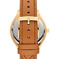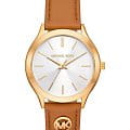 Женские американские часы с минеральным стекломМинеральное стеклоМинеральное стекло представляет собой искусственно выращенный минерал кварца. Такое стекло отличается особой устойчивостью к повреждениям и царапинам. Уступает по некоторым качествам сапфировому стеклу. Michael Kors Runway MK7465, кварцевый механизм с высокой точностью. Корпус часов изготовлен из нержавеющей стали с PVD-покрытиемPVDУльтратонкое покрытие наносится в технике вакуумного напыления, сочетает в себе нитрид титана особой прочности со слоем золота или оксида хрома. Несёт в себе декоративную или защитную функцию.. Класс водозащиты: 50 метров, позволит защитить корпус от случайных брызг или капель дождя. Стальной браслет из стали с PVD-покрытиемPVDУльтратонкое покрытие наносится в технике вакуумного напыления, сочетает в себе нитрид титана особой прочности со слоем золота или оксида хрома. Несёт в себе декоративную или защитную функцию. на раскладной застёжкеРаскладная застёжкаТакой тип застёжки используется только на браслетах из металла. Она никогда не раскрывается полностью, происходит разделение на 2 и более частей. Раскладывающая застёжка снизит вероятность потери часов к минимуму.. Кожаный ремешок на стандартной застежке.