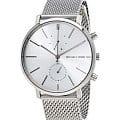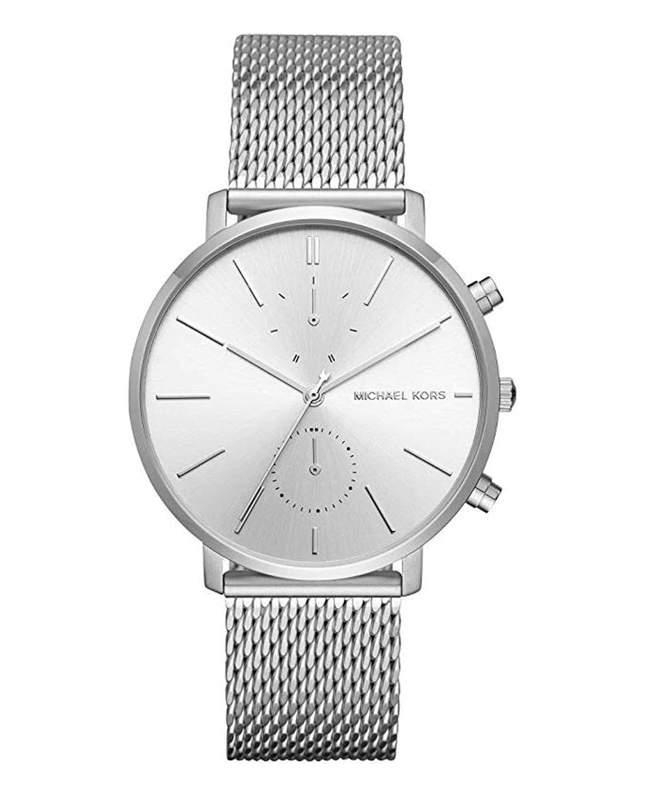 Женские американские часы с минеральным стекломМинеральное стеклоМинеральное стекло представляет собой искусственно выращенный минерал кварца. Такое стекло отличается особой устойчивостью к повреждениям и царапинам. Уступает по некоторым качествам сапфировому стеклу. Michael Kors Parker MK8541, кварцевый механизм с высокой точностью. Корпус часов изготовлен из нержавеющей стали. Календарь, 12-ти часовой формат времени и 24-х часовой формат времени. Класс водозащиты: 50 метров, позволит защитить корпус от случайных брызг или капель дождя. Стальной браслет миланского плетения на раскладном замкеРаскладной замокДанный вариант застежки используется только на часах с металлическим браслетом. Отличительная особенность такого крепления в том, что длина браслета становится универсальной и вы можете самостоятельно отрегулировать нужный вам размер – застежка просто двигается по браслету часов..