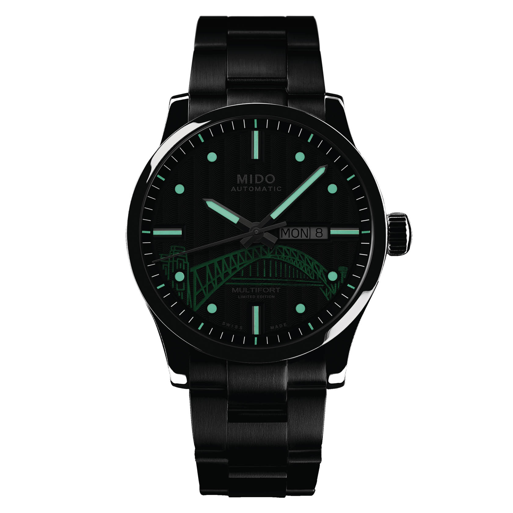 Mido черпает вдохновение для создания швейцарских часов Multifort Gentleman в архитектуре знаменитого Сиднейского моста Харбор-Бридж. Характерные для Multifort женевские волны на циферблате напоминают подвесные тросы моста. Надежность и исключительная долговечность этой коллекции, которая выпускается с 1934 года, также определяют Multifort Gentleman как часы со спортивным характером, выдержавшие испытание временем. Автоматический механизм Caliber 80 подчеркивает эту надежность, обеспечивая до 80 часов запаса хода. ОГРАНИЧЕННЫЙ ТИРАЖ 1932 ЭКЗЕМПЛЯРА