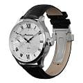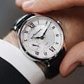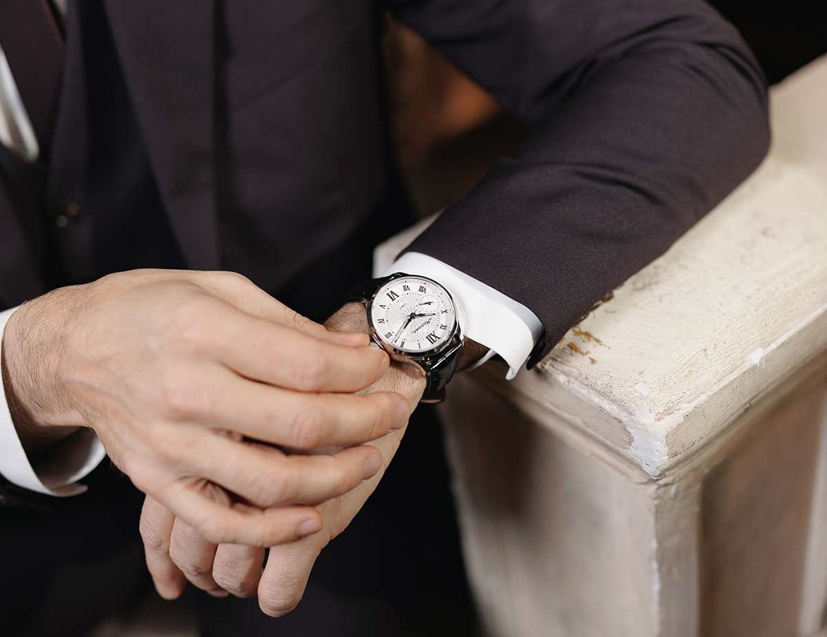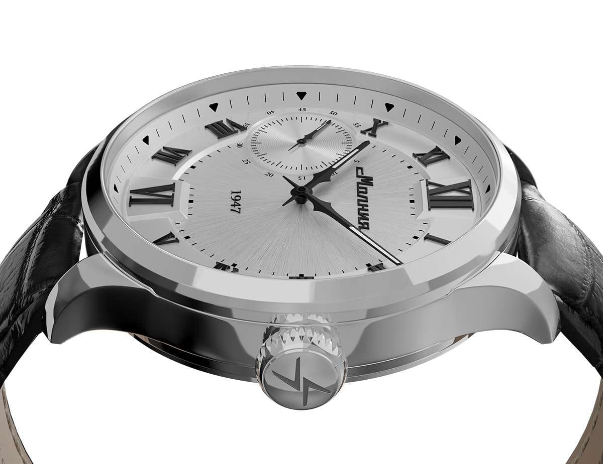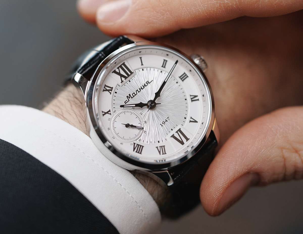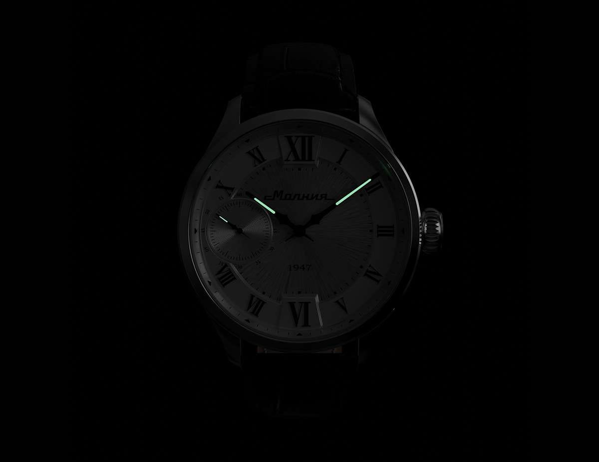 Мужские механические часы с ручным подзаводом — это аксессуар от легендарного бренда «МОЛНИЯ», созданный на Челябинском часовом заводе. Корпус диаметром 41 мм и толщиной 12 мм выполнен из нержавеющей стали 316L с зеркальной полировкой. БезельБезельВнешний ободок, закрепляющий стекло. В спортивных часах так называется поворотное кольцо с делениями на циферблате, выполняет роль таймера – замеряет отрезки времени на шкале. Неподвижный безель – элемент декора. Однонаправленно вращающийся безель на дайверских часах позволяет фиксировать моменты погружения и выныривания на поверхность. также выполнен из стали с зеркальной отделкой. Циферблат белого цвета оформлен римскими цифрами и стальными индексами. Малая секундная стрелка вынесена на позицию 9 часов. Циферблат защищён сапфировым стекломСапфировое стеклоПрочный и надёжный материал из кристалла сапфира синтетического происхождения, характеризующийся особой твёрдостью и устойчивостью к царапинам и повреждениям. толщиной 2,5 мм. Механизм — мануфактурный калибр 3603, собранный вручную, с запасом хода до 40 часов. Прозрачная задняя крышка позволяет наблюдать за работой механизма. Часы оснащены чёрным кожаным ремешком шириной 20 мм с раскладной застёжкойРаскладная застёжкаТакой тип застёжки используется только на браслетах из металла. Она никогда не раскрывается полностью, происходит разделение на 2 и более частей. Раскладывающая застёжка снизит вероятность потери часов к минимуму. и системой быстрой замены. Водонепроницаемость 100 м позволяет использовать часы для плавания и повседневного ношения. Идеальный выбор для тех, кто ценит российское качество и традиции.