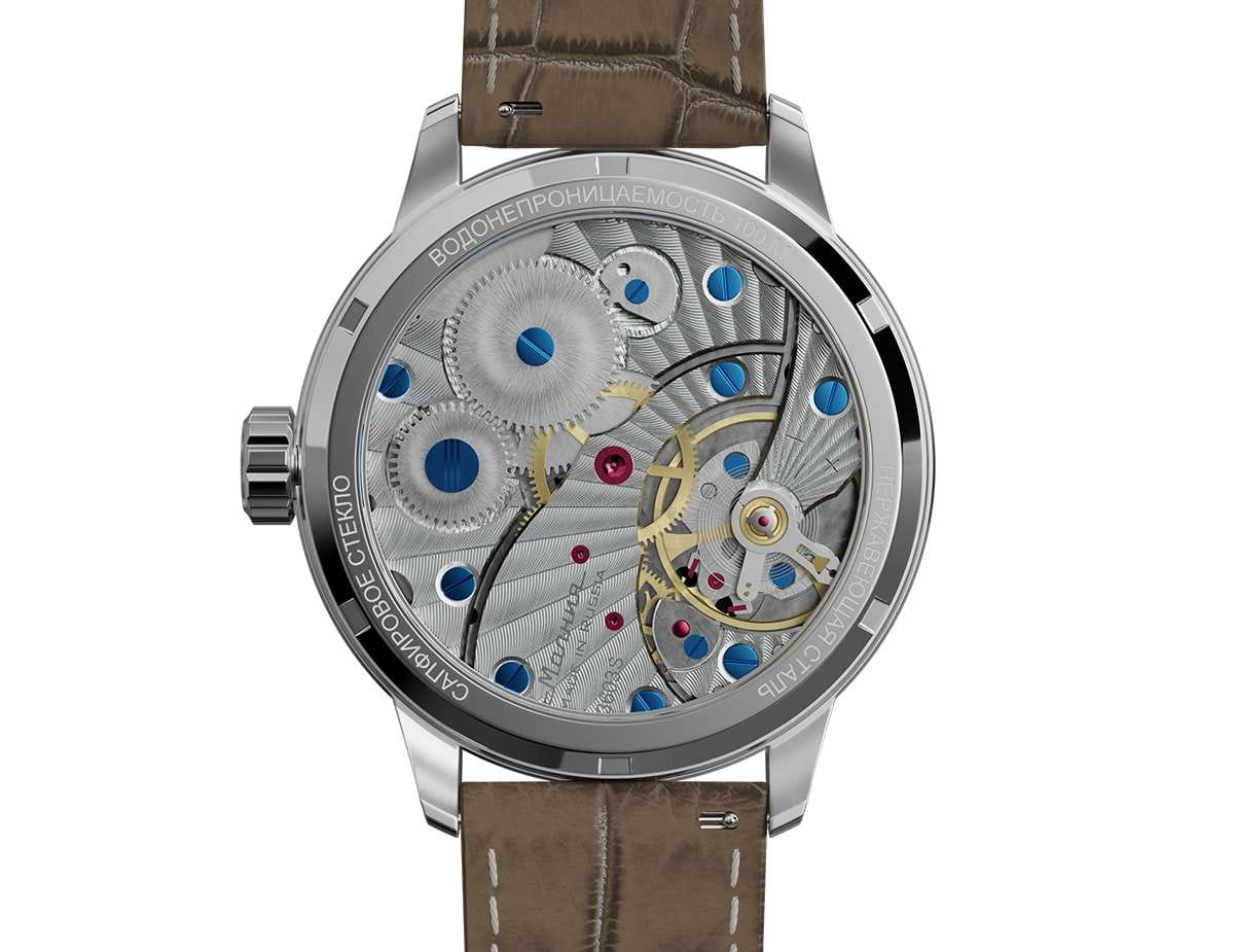 Мужские механические часы с ручным подзаводом — это аксессуар от легендарного бренда «МОЛНИЯ», созданный на Челябинском часовом заводе. Корпус диаметром 41 мм и толщиной 12 мм выполнен из нержавеющей стали 316L с зеркальной полировкой. БезельБезельВнешний ободок, закрепляющий стекло. В спортивных часах так называется поворотное кольцо с делениями на циферблате, выполняет роль таймера – замеряет отрезки времени на шкале. Неподвижный безель – элемент декора. Однонаправленно вращающийся безель на дайверских часах позволяет фиксировать моменты погружения и выныривания на поверхность. также выполнен из стали с зеркальной отделкой. Циферблат бежевый цвета оформлен римскими цифрами и стальными индексами. Малая секундная стрелка вынесена на позицию 9 часов. Циферблат защищён сапфировым стекломСапфировое стеклоПрочный и надёжный материал из кристалла сапфира синтетического происхождения, характеризующийся особой твёрдостью и устойчивостью к царапинам и повреждениям. толщиной 2,5 мм. Механизм — мануфактурный калибр 3603, собранный вручную, с запасом хода до 40 часов. Прозрачная задняя крышка позволяет наблюдать за работой механизма. Часы оснащены коричневым кожаным ремешком шириной 20 мм с раскладной застёжкойРаскладная застёжкаТакой тип застёжки используется только на браслетах из металла. Она никогда не раскрывается полностью, происходит разделение на 2 и более частей. Раскладывающая застёжка снизит вероятность потери часов к минимуму. и системой быстрой замены. Водонепроницаемость 100 м позволяет использовать часы для плавания и повседневного ношения. Идеальный выбор для тех, кто ценит российское качество и традиции.