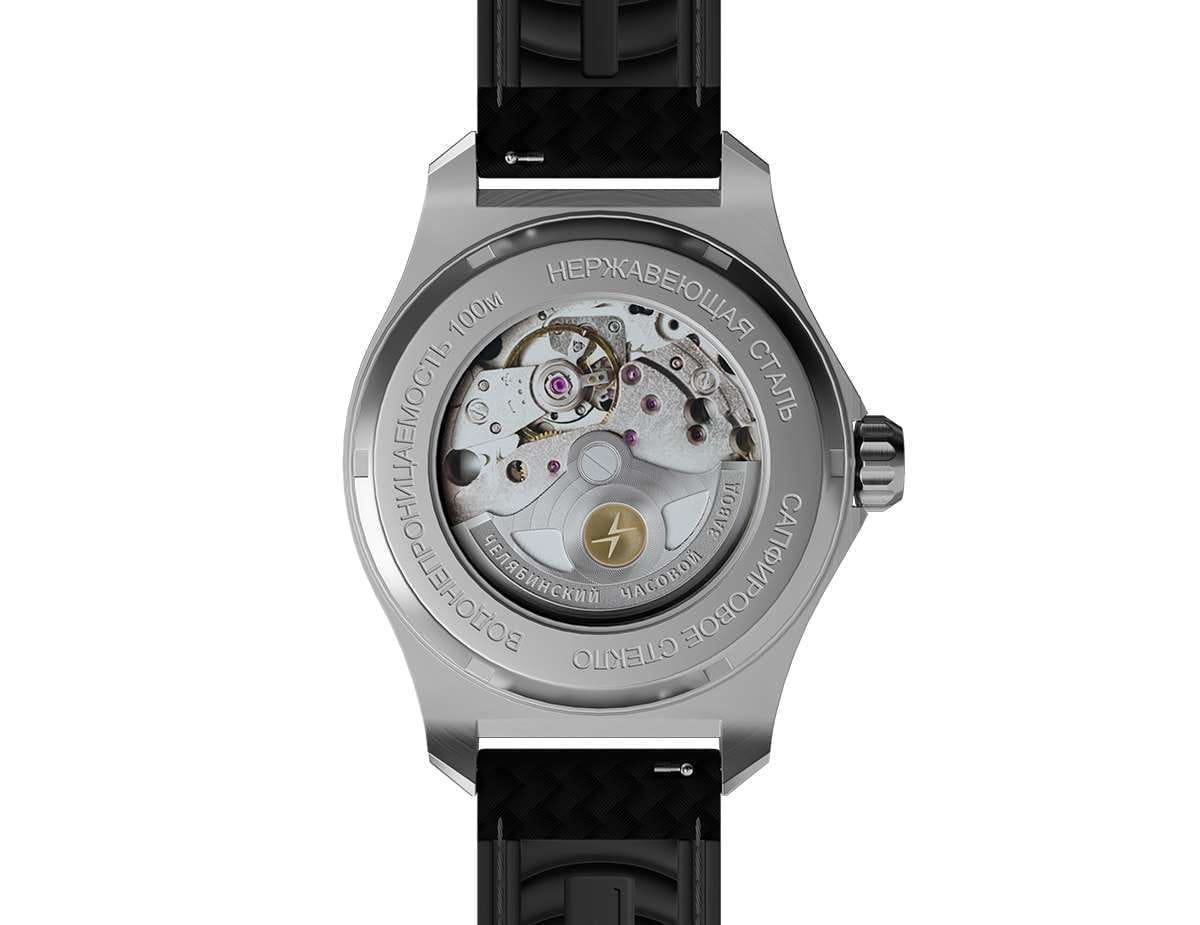 Мужские механические часы с автоподзаводом — это надёжный аксессуар от легендарного бренда «МОЛНИЯ», созданный на Челябинском часовом заводе. Корпус диаметром 42 мм выполнен из нержавеющей стали 316L с зеркальной полировкой. БезельБезельВнешний ободок, закрепляющий стекло. В спортивных часах так называется поворотное кольцо с делениями на циферблате, выполняет роль таймера – замеряет отрезки времени на шкале. Неподвижный безель – элемент декора. Однонаправленно вращающийся безель на дайверских часах позволяет фиксировать моменты погружения и выныривания на поверхность. также выполнен из стали с зеркальной отделкой. Циферблат серебристого цвета оформлен индексами и стрелками. Окошко даты расположено в положении 3 часов. Стрелки и метки с люминесцентным покрытиемЛюминесцентное покрытиеПозволяет считывать показания времени в темноте. Производители наносят на стрелки, часовые индексы, безель или поверхность циферблата светонакопительный состав, дающий холодное свечение. Super-LumiNova, обеспечивающим хорошую читаемость в темноте. Циферблат защищён сапфировым стекломСапфировое стеклоПрочный и надёжный материал из кристалла сапфира синтетического происхождения, характеризующийся особой твёрдостью и устойчивостью к царапинам и повреждениям. с антибликовым покрытиемАнтибликовое покрытиеСлой оксида металла в 0,13-0,3 микрон, благодаря которому стекло часов не бликует и не отражает свет. Антибликовое покрытие уменьшает отражение света в 10 раз, обеспечивая отличную читаемость показателей циферблата.. Механизм — японский автоматический калибр Miyota 8215 с функцией и запасом хода до 42 часов. Прозрачная задняя крышка позволяет наблюдать за работой механизма с кастомным ротором. Часы оснащены кожаным ремешком чёрного цвета с подкладкой из фтористого каучука и классической пряжкой, а также системой быстрой замены. Водонепроницаемость 100 м позволяет использовать часы для плавания и повседневного ношения. Идеальный выбор для тех, кто ценит качество, точность и стиль.