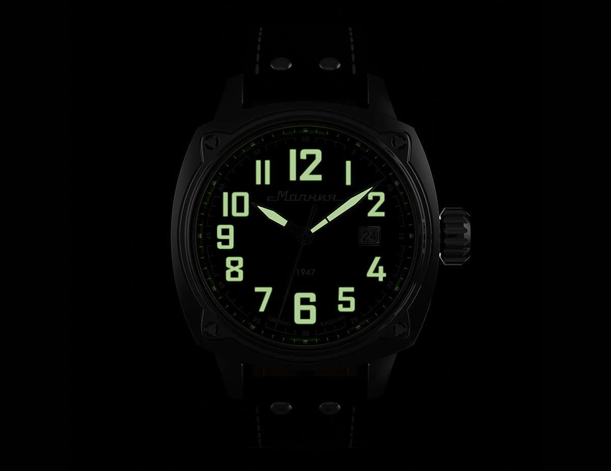 Мужские механические часы с автоподзаводом — это надёжный аксессуар от легендарного бренда «МОЛНИЯ», созданный на Челябинском часовом заводе. Корпус диаметром 42 мм выполнен из нержавеющей стали 316L с зеркальной полировкой. БезельБезельВнешний ободок, закрепляющий стекло. В спортивных часах так называется поворотное кольцо с делениями на циферблате, выполняет роль таймера – замеряет отрезки времени на шкале. Неподвижный безель – элемент декора. Однонаправленно вращающийся безель на дайверских часах позволяет фиксировать моменты погружения и выныривания на поверхность. также выполнен из стали с зеркальной отделкой. Циферблат синего цвета оформлен индексами и стрелками. Окошко даты расположено в положении 3 часов. Стрелки и метки с люминесцентным покрытиемЛюминесцентное покрытиеПозволяет считывать показания времени в темноте. Производители наносят на стрелки, часовые индексы, безель или поверхность циферблата светонакопительный состав, дающий холодное свечение. Super-LumiNova, обеспечивающим хорошую читаемость в темноте. Циферблат защищён сапфировым стекломСапфировое стеклоПрочный и надёжный материал из кристалла сапфира синтетического происхождения, характеризующийся особой твёрдостью и устойчивостью к царапинам и повреждениям. с антибликовым покрытиемАнтибликовое покрытиеСлой оксида металла в 0,13-0,3 микрон, благодаря которому стекло часов не бликует и не отражает свет. Антибликовое покрытие уменьшает отражение света в 10 раз, обеспечивая отличную читаемость показателей циферблата.. Механизм — японский автоматический калибр Miyota 8215 с функцией и запасом хода до 42 часов. Прозрачная задняя крышка позволяет наблюдать за работой механизма. Часы оснащены кожаным ремешком чёрного цвета с белой отстрочкой и классической пряжкой. Водонепроницаемость 100 м позволяет использовать часы для плавания и повседневного ношения. Идеальный выбор для тех, кто ценит качество, точность и стиль.