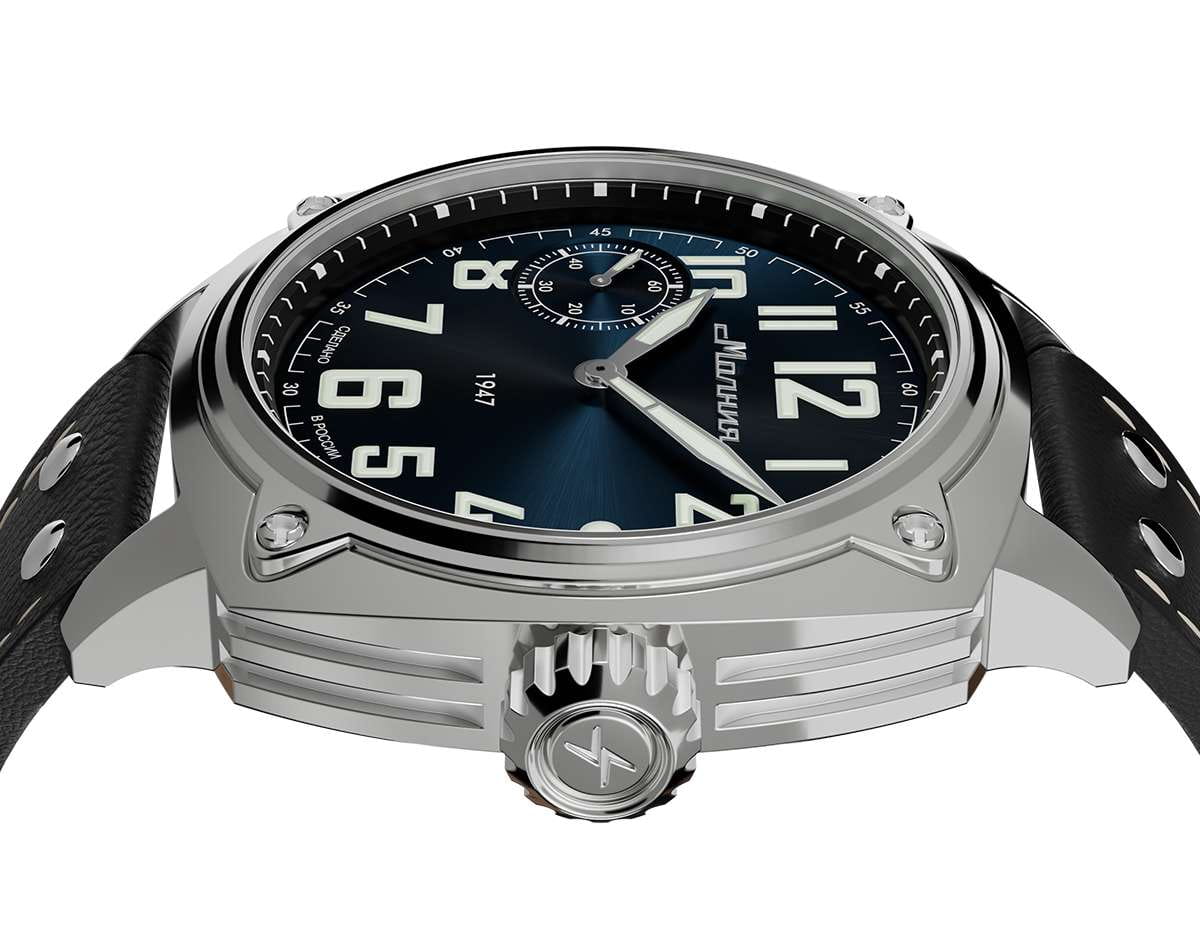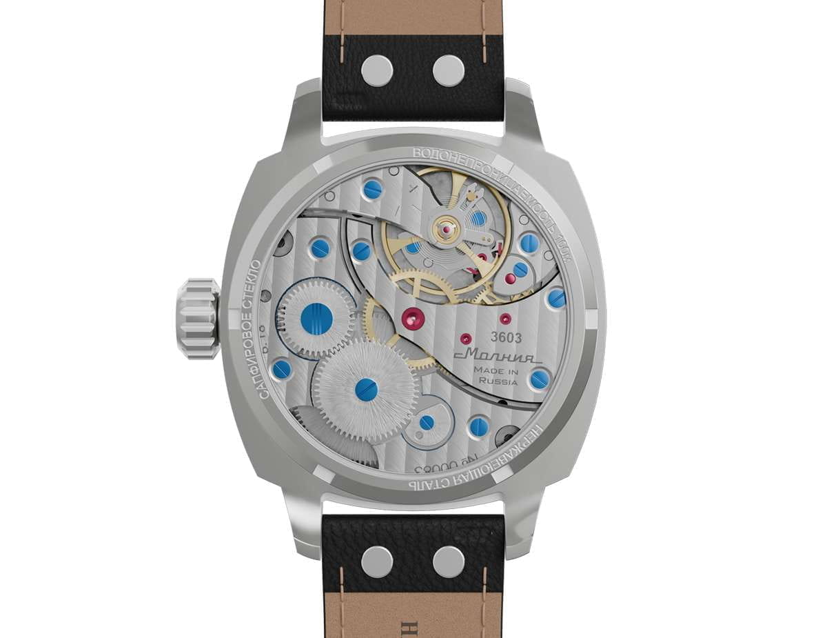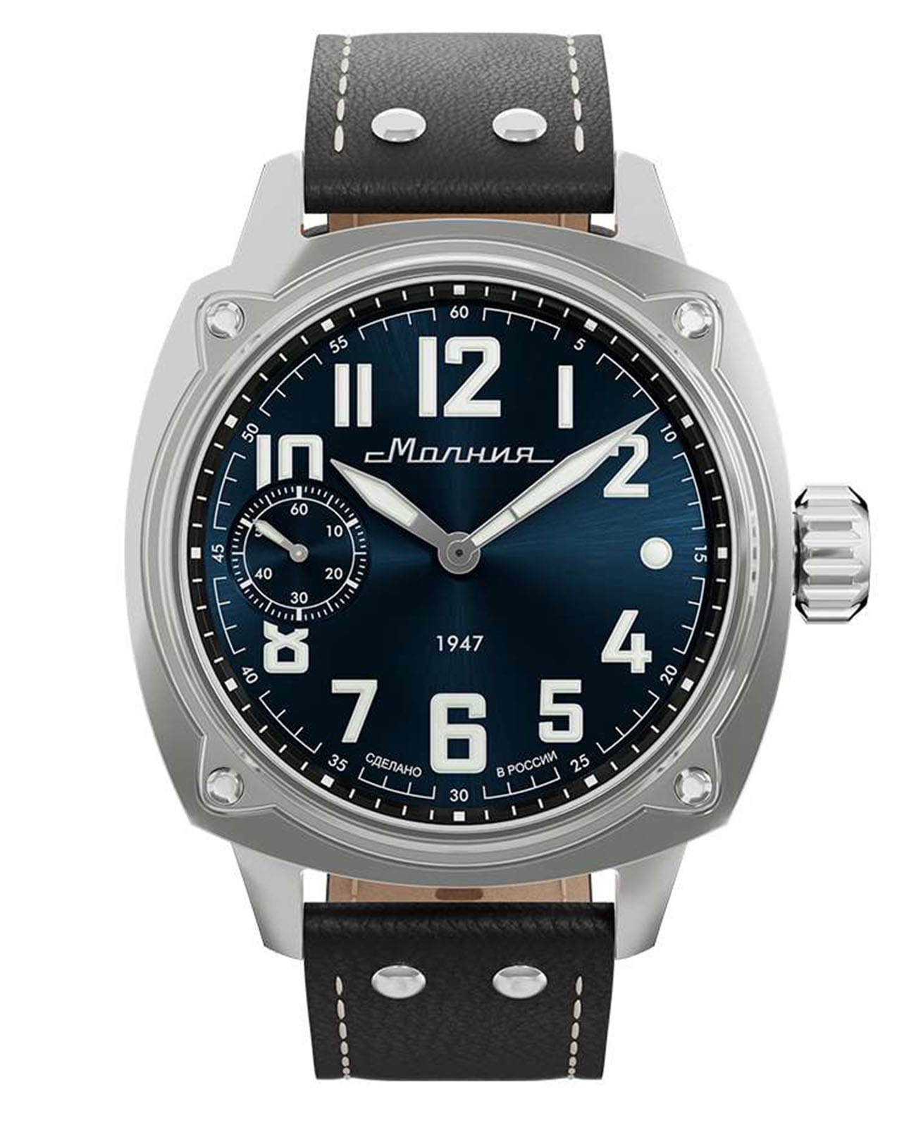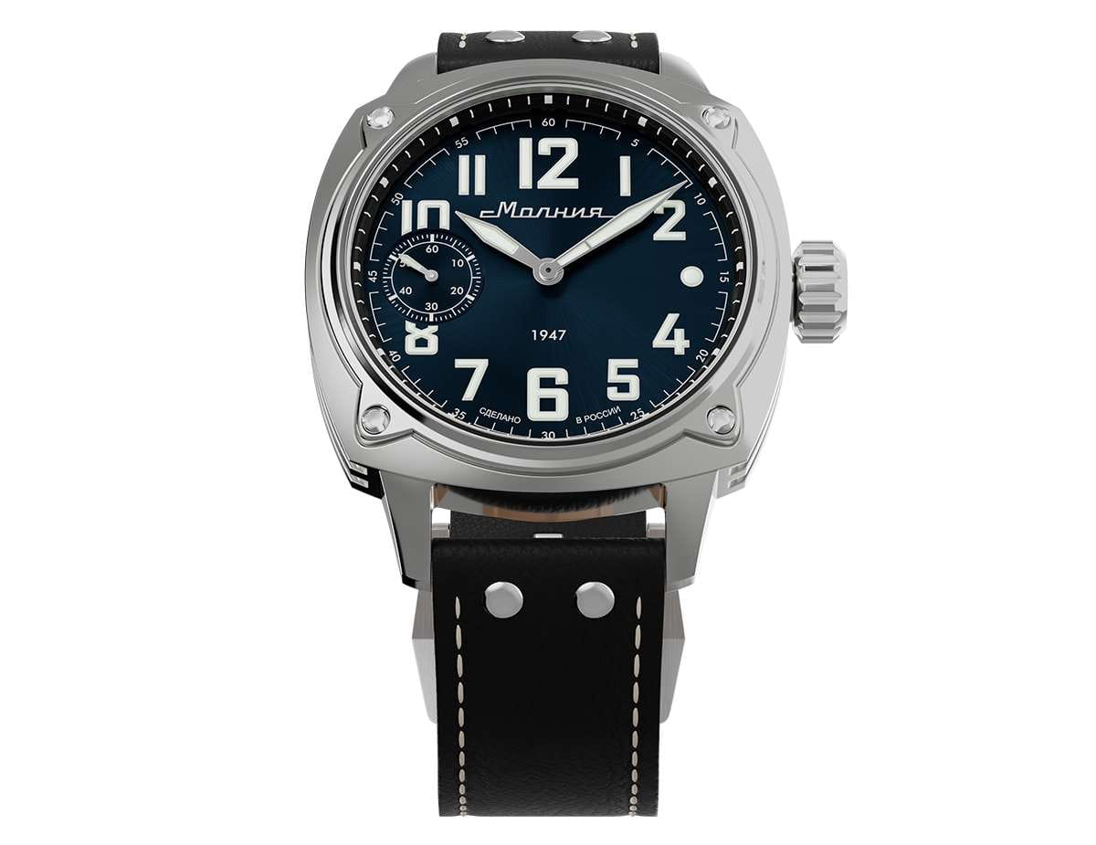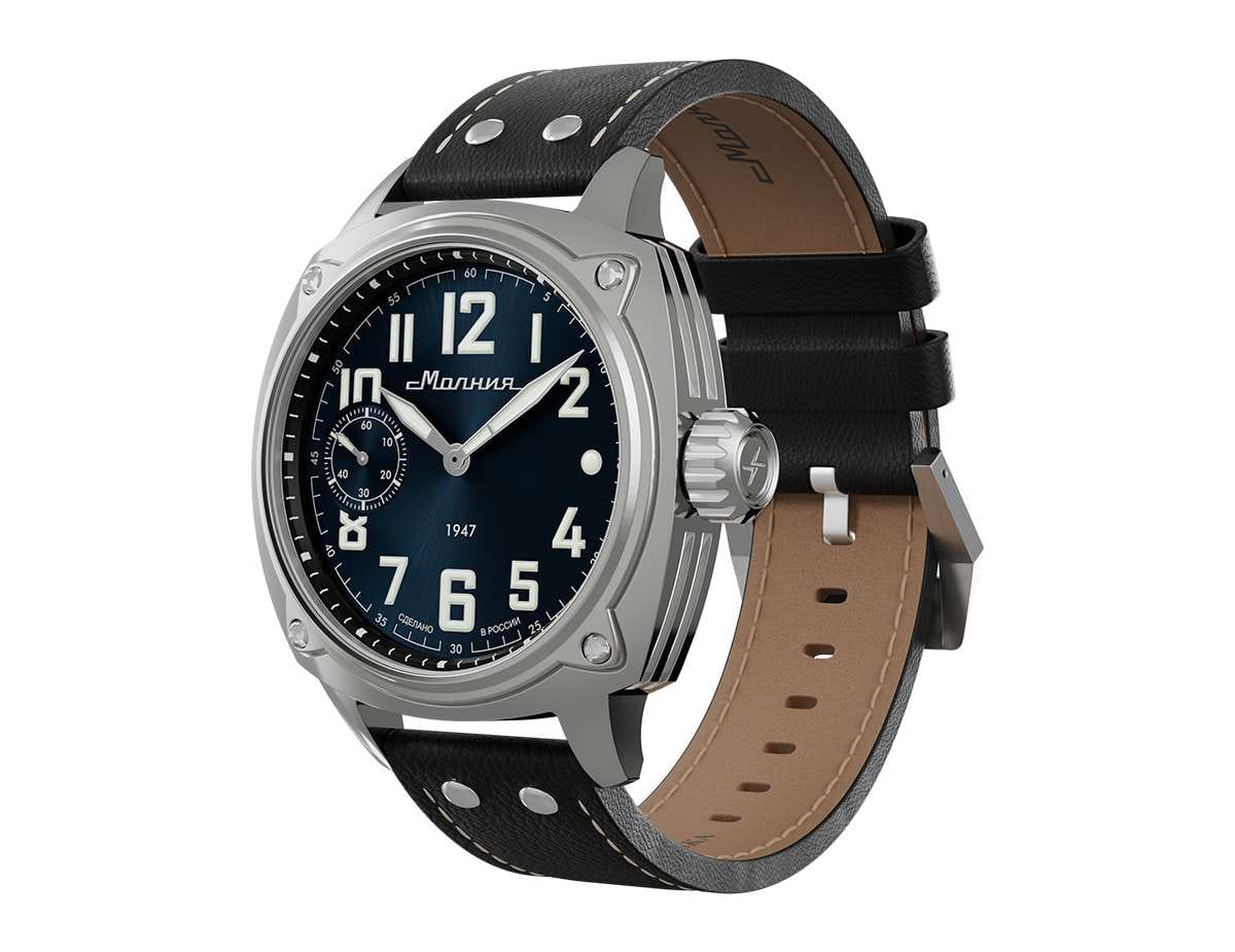Мужские механические часы с ручным подзаводом — это аксессуар от легендарного бренда «МОЛНИЯ», созданный на Челябинском часовом заводе. Корпус диаметром 42 мм выполнен из нержавеющей стали 316L с зеркальной полировкой. БезельБезельВнешний ободок, закрепляющий стекло. В спортивных часах так называется поворотное кольцо с делениями на циферблате, выполняет роль таймера – замеряет отрезки времени на шкале. Неподвижный безель – элемент декора. Однонаправленно вращающийся безель на дайверских часах позволяет фиксировать моменты погружения и выныривания на поверхность. также выполнен из стали с зеркальной отделкой. Циферблат синего цвета оформлен индексами и стрелками. Малая секундная стрелка вынесена на позицию 9 часов. Стрелки и метки с люминесцентным покрытиемЛюминесцентное покрытиеПозволяет считывать показания времени в темноте. Производители наносят на стрелки, часовые индексы, безель или поверхность циферблата светонакопительный состав, дающий холодное свечение. Super-LumiNova, обеспечивающим хорошую читаемость в темноте. Циферблат защищён сапфировым стекломСапфировое стеклоПрочный и надёжный материал из кристалла сапфира синтетического происхождения, характеризующийся особой твёрдостью и устойчивостью к царапинам и повреждениям. с антибликовым покрытиемАнтибликовое покрытиеСлой оксида металла в 0,13-0,3 микрон, благодаря которому стекло часов не бликует и не отражает свет. Антибликовое покрытие уменьшает отражение света в 10 раз, обеспечивая отличную читаемость показателей циферблата.. Механизм — мануфактурный калибр 3603, собранный вручную, с запасом хода до 40 часов. Прозрачная задняя крышка позволяет наблюдать за работой механизма. Часы оснащены кожаным ремешком чёрного цвета с белой отстрочкой и классической пряжкой. Водонепроницаемость 100 м позволяет использовать часы для плавания и повседневного ношения. Идеальный выбор для тех, кто ценит российское качество и традиции.