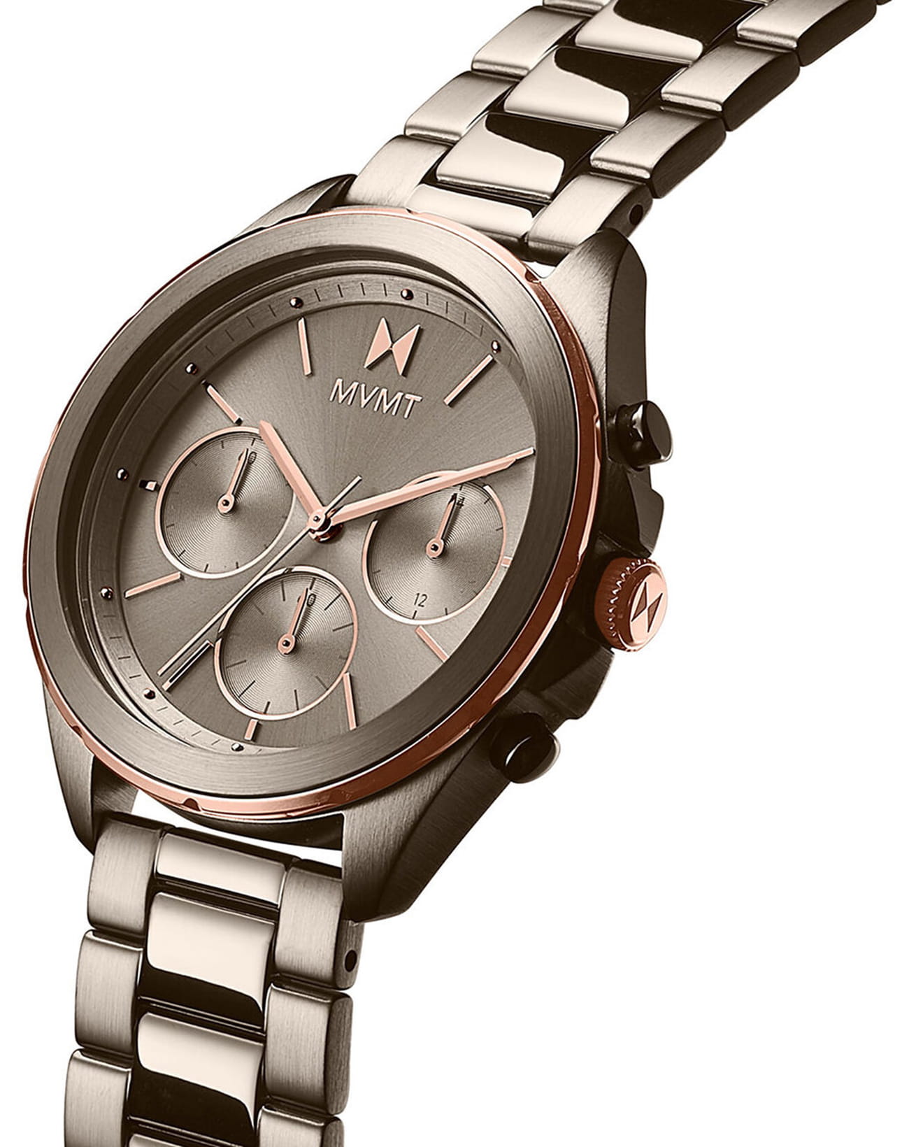 Женские кварцевые часы c хронографом MVMT 28000130-D, кварцевый механизм с высокой точностью. Класс водозащиты: 100 метров, позволит плавать, нырять и заниматься другими водными видами спорта. Корпус часов изготовлен из стали, цвета.
