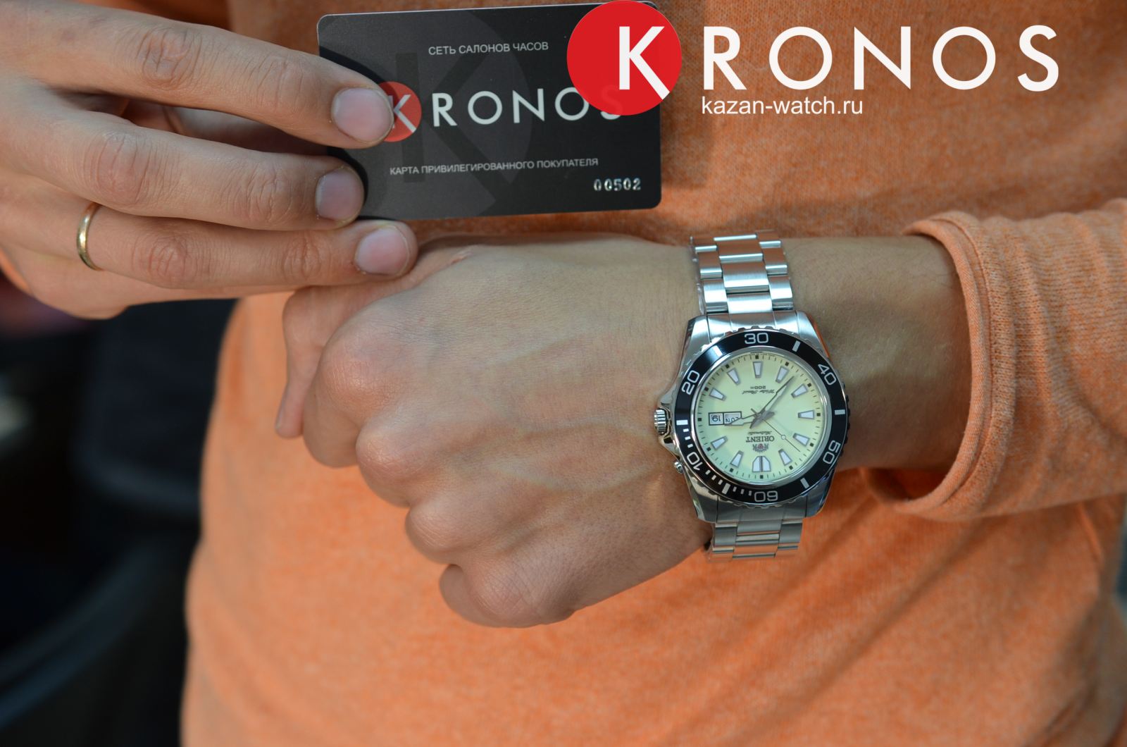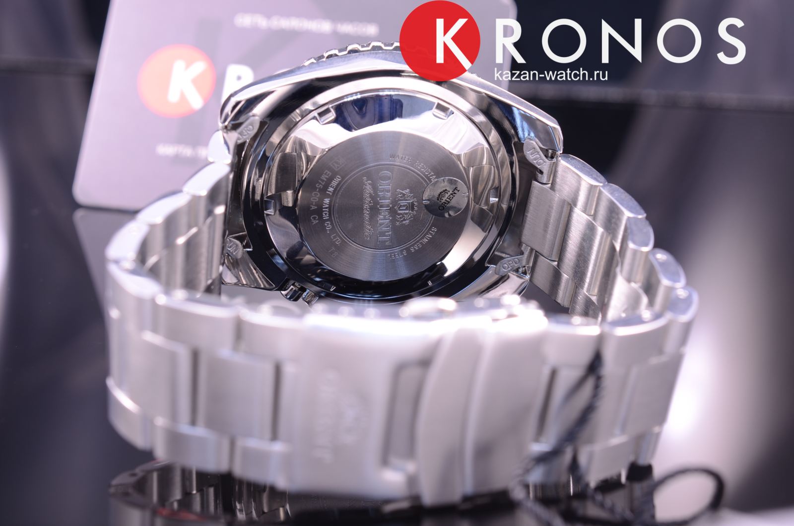 Светлый циферблат с крупной индикацией времени не имеет лишних деталей. Японский автоматический калибр Orient 46943 имеет запас хода на 40 часов. Завинчивающаяся задняя крышка и заводная головка усиливают водостойкость в 200 метров. люминесцентная подсветкаЛюминесцентное покрытиеПозволяет считывать показания времени в темноте. Производители наносят на стрелки, часовые индексы, безель или поверхность циферблата светонакопительный состав, дающий холодное свечение. позволяет просматривать время и в темноте. На позиции 3 часов – окошко даты и дня недели.