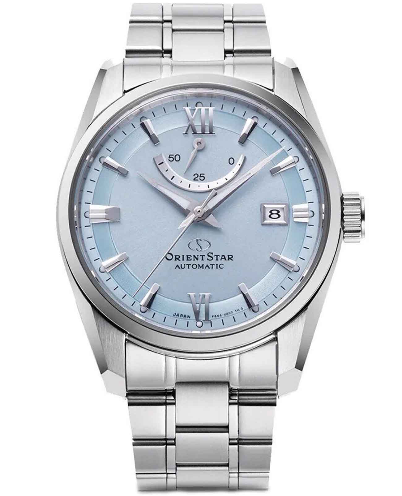 Оригинальные механические часы Orient Star Contemporary RE-AU0109L представляют собой идеальное сочетание классического дизайна и современных технологий. Корпус диаметром 38,5 мм выполнен из нержавеющей стали, что обеспечивает долговечность и презентабельный внешний вид. Циферблат голубого цвета украшен индексами и римскими цифрами, а также серыми стрелками для контраста, что делает время всегда читаемым. Защиту циферблата обеспечивает сапфировое стеклоСапфировое стеклоПрочный и надёжный материал из кристалла сапфира синтетического происхождения, характеризующийся особой твёрдостью и устойчивостью к царапинам и повреждениям., которое устойчиво к царапинам и обеспечивает четкость изображения. Часы также оснащены функцией отображения даты в районе 3 часа, и отдельной шкалой с запасом хода до 50 часов, добавляя практичности к своему классическому дизайну. Водозащита 100 метров делает часы практичными для повседневного использования, включая активности в воде. Дополняет образ металлический браслет, закрывающийся на надёжную раскладную застёжкуРаскладная застёжкаТакой тип застёжки используется только на браслетах из металла. Она никогда не раскрывается полностью, происходит разделение на 2 и более частей. Раскладывающая застёжка снизит вероятность потери часов к минимуму., что добавляет комфорта при ношении. Вес часов составляет около 120 грамм, что делает их удобными для длительного использования. RE-AU0109L — это выбор тех, кто ценит точность, качество и элегантный дизайн в одном аксессуаре. Эти часы станут прекрасным дополнением как к повседневной, так и к формальной одежде, подчеркивая ваш стиль и индивидуальность.