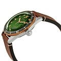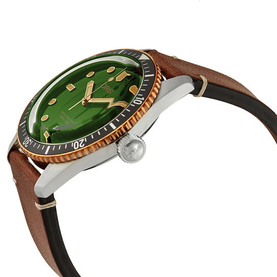 Многокомпонентный корпус из бронзы и стали, вращающийся безельБезельВнешний ободок, закрепляющий стекло. В спортивных часах так называется поворотное кольцо с делениями на циферблате, выполняет роль таймера – замеряет отрезки времени на шкале. Неподвижный безель – элемент декора. Однонаправленно вращающийся безель на дайверских часах позволяет фиксировать моменты погружения и выныривания на поверхность. с минутной шкалой . Сапфировое стеклоСапфировое стеклоПрочный и надёжный материал из кристалла сапфира синтетического происхождения, характеризующийся особой твёрдостью и устойчивостью к царапинам и повреждениям., выпуклое с обеих сторон, внутреннее антибликовое покрытие. Прозрачная задняя крышка из сапфирового стеклаСапфировое стеклоПрочный и надёжный материал из кристалла сапфира синтетического происхождения, характеризующийся особой твёрдостью и устойчивостью к царапинам и повреждениям.. Стрелки и метки с люминесцентным покрытиемЛюминесцентное покрытиеПозволяет считывать показания времени в темноте. Производители наносят на стрелки, часовые индексы, безель или поверхность циферблата светонакопительный состав, дающий холодное свечение.. Завинчивающаяся заводная головка.