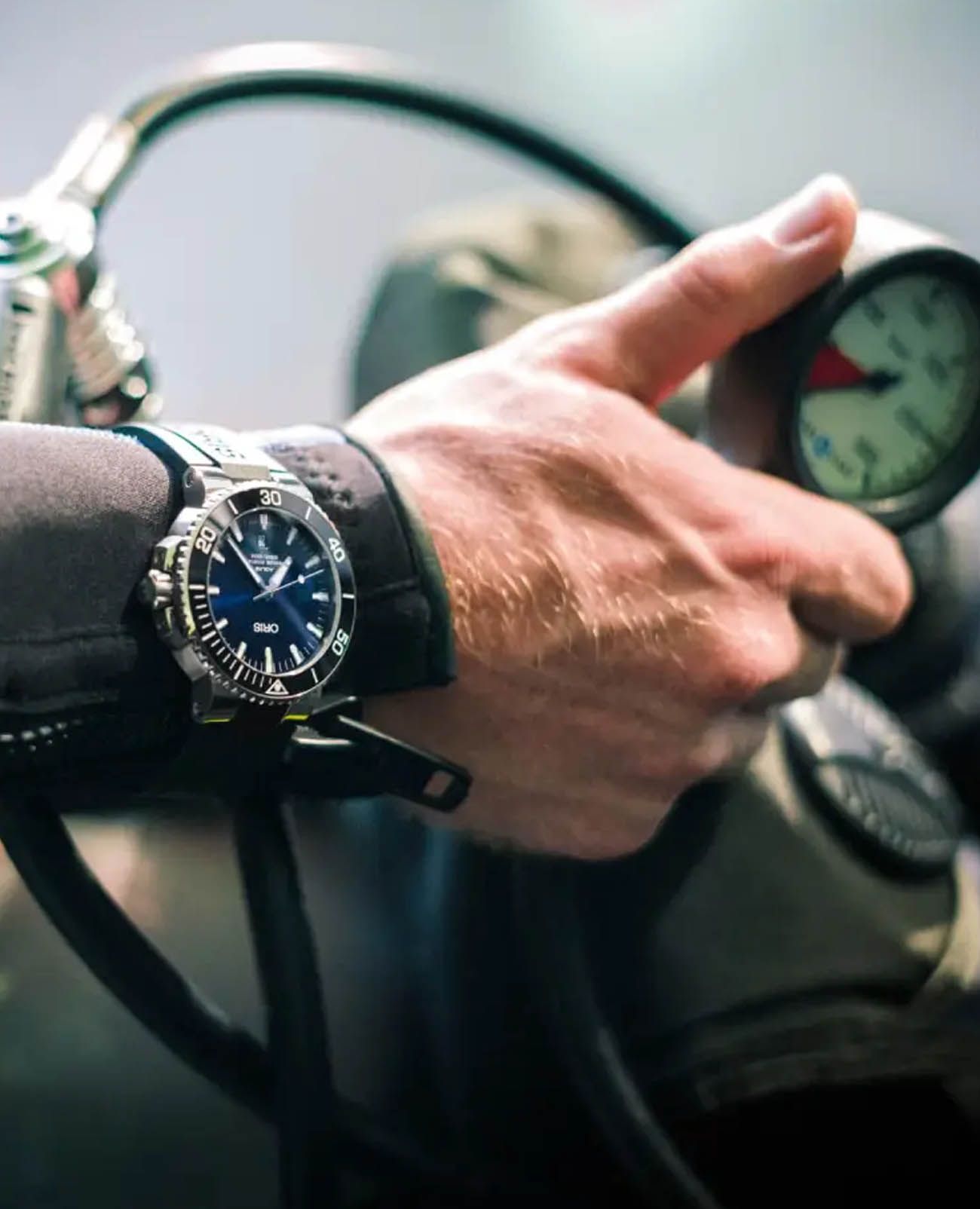 Корпус выполнен из прочной нержавеющей стали, что обеспечивает долговечность и устойчивость к внешним воздействиям. Поворотный безель помогает точно отслеживать время погружения, делая эти часы незаменимыми для дайверов. Циферблат с метками в виде штрихов защищен сапфировым стекломСапфировое стеклоПрочный и надёжный материал из кристалла сапфира синтетического происхождения, характеризующийся особой твёрдостью и устойчивостью к царапинам и повреждениям., которое не царапается при механическом воздействии и является одним из лучших материалов для наручных часов.