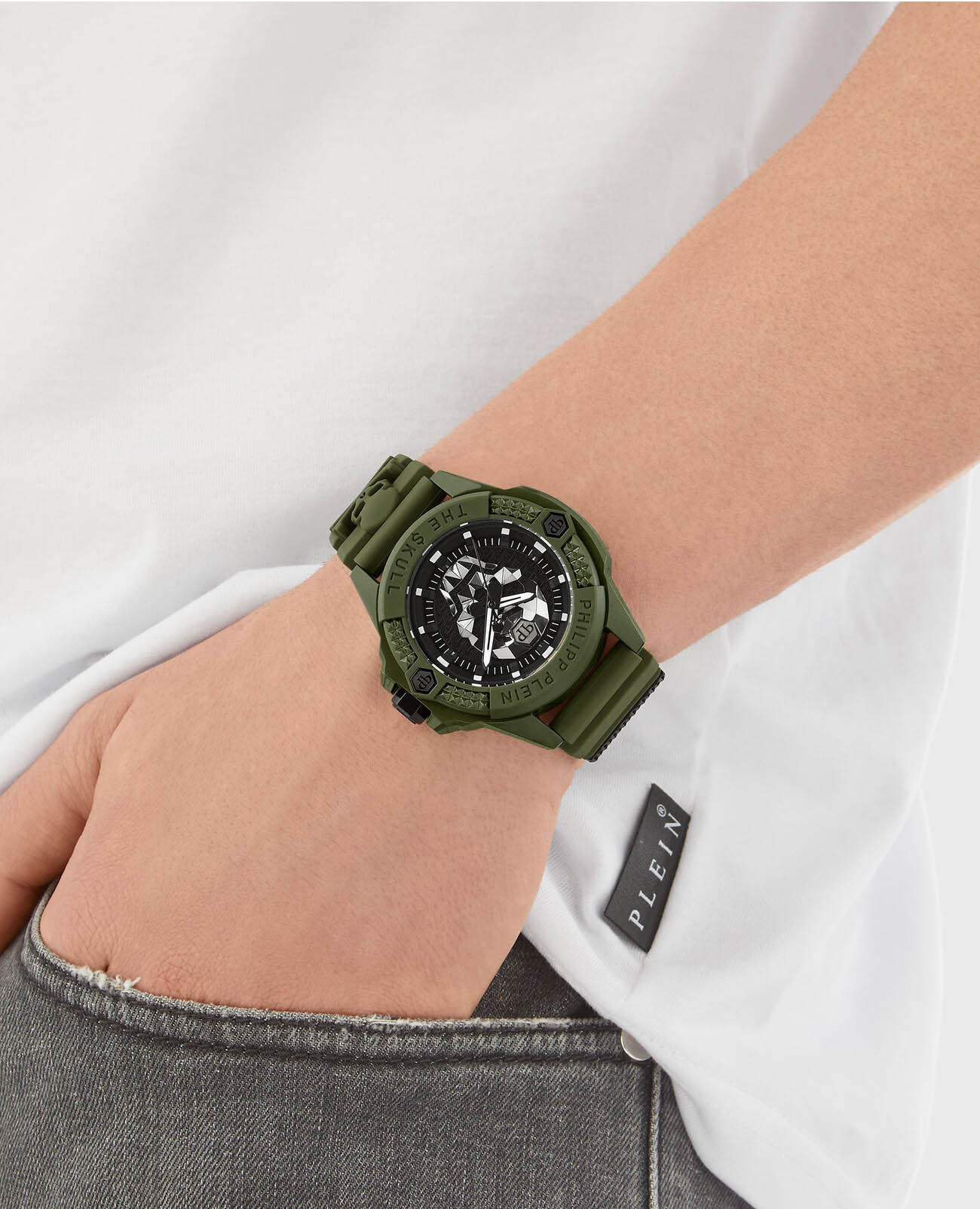 Мужские часы Philipp Plein The Skull Ecoceramic PWUBA0423, кварцевый механизм с высокой точностью. Класс водозащиты: 50 метров, позволит защитить корпус от случайных брызг или капель дождя. Корпус часов изготовлен из экокерамики. Минеральное стеклоМинеральное стеклоМинеральное стекло представляет собой искусственно выращенный минерал кварца. Такое стекло отличается особой устойчивостью к повреждениям и царапинам. Уступает по некоторым качествам сапфировому стеклу. устойчивое к мелким механическим повреждениям. Стрелки с люминесцентным покрытиемЛюминесцентное покрытиеПозволяет считывать показания времени в темноте. Производители наносят на стрелки, часовые индексы, безель или поверхность циферблата светонакопительный состав, дающий холодное свечение..