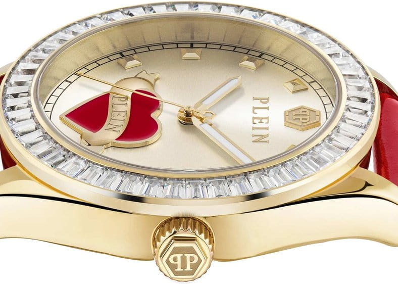 Женские кварцевые часы Philipp Plein Plein Valentine PW2BA0825_SET – дерзкое заявление любви к роскоши и бунтарскому стилю. Диаметр круглого корпуса из прочной нержавеющей стали сс IP-покрытиемIP-покрытиеМетод ионного напыления. Демонстрирует повышенную устойчивость к истиранию, окислению и химическим веществам. Под воздействием высокого давления и температуры около 1500°C молекулы металла надёжно соединяются с частицами корпуса часов. равен 38 мм. Минеральное стеклоМинеральное стеклоМинеральное стекло представляет собой искусственно выращенный минерал кварца. Такое стекло отличается особой устойчивостью к повреждениям и царапинам. Уступает по некоторым качествам сапфировому стеклу. защищает циферблат от царапин. Кожаный ремешок на стандартной застёжке обеспечивает надёжную фиксацию и комфортное ношение. Люминесцентное покрытиеЛюминесцентное покрытиеПозволяет считывать показания времени в темноте. Производители наносят на стрелки, часовые индексы, безель или поверхность циферблата светонакопительный состав, дающий холодное свечение. стрелок и меток позволит следить за временем даже в полной темноте. БезельБезельВнешний ободок, закрепляющий стекло. В спортивных часах так называется поворотное кольцо с делениями на циферблате, выполняет роль таймера – замеряет отрезки времени на шкале. Неподвижный безель – элемент декора. Однонаправленно вращающийся безель на дайверских часах позволяет фиксировать моменты погружения и выныривания на поверхность. инкрустирован кристаллами Preciosa. В комплекте стальной браслет. Яркий дизайн с узнаваемым логотипом Plein и смелыми акцентами не оставит вас незамеченным. Идеальный аксессуар для тех, кто ценит индивидуальность и не боится выделяться из толпы.