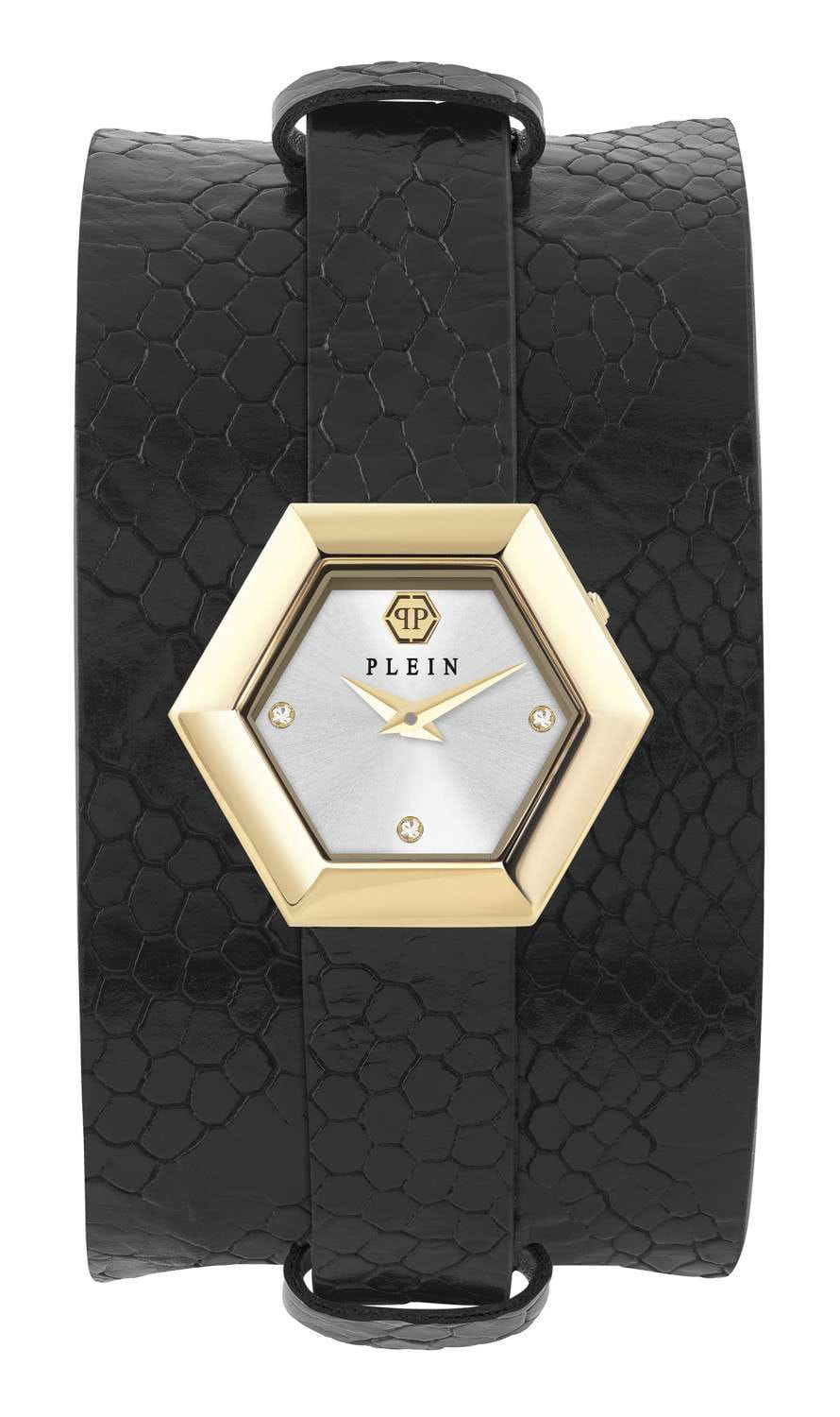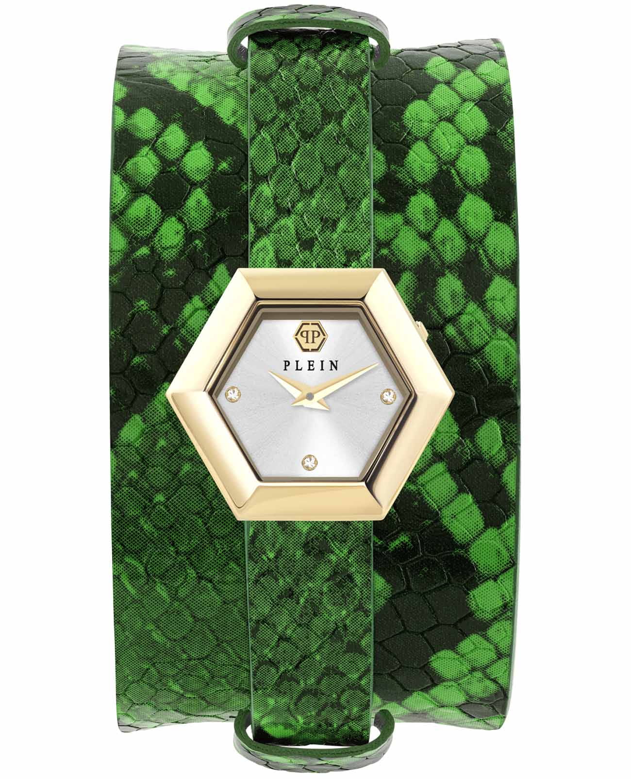 Женские кварцевые часы Philipp Plein La Jungle De Plein PW6FA0225_SET — это стильное сочетание элегантности и современного дизайна. Изящный корпус выполнен из нержавеющей стали с PVD-покрытиемPVDУльтратонкое покрытие наносится в технике вакуумного напыления, сочетает в себе нитрид титана особой прочности со слоем золота или оксида хрома. Несёт в себе декоративную или защитную функцию. золотистого цвета, диаметром 28 мм, что придаст образу женственности и романтизма. Изысканный циферблат с метками в виде точек украшены кристаллами придает модели особый блеск. Циферблат защищен минеральным стекломМинеральное стеклоМинеральное стекло представляет собой искусственно выращенный минерал кварца. Такое стекло отличается особой устойчивостью к повреждениям и царапинам. Уступает по некоторым качествам сапфировому стеклу., обеспечивающий устойчивость к царапинам. Часы оснащены надежным кварцевым механизмом. Кожаный ремешок на стандартной застёжке, гарантирует комфортное и безопасное ношение. Класс водозащиты: 50 метров позволит защитить корпус от случайных брызг или капель дождя. Phlipp Plein — отличный выбор для тех, кто ценит яркость и качество. В комплекте доп. ремешок из искусственной кожи.