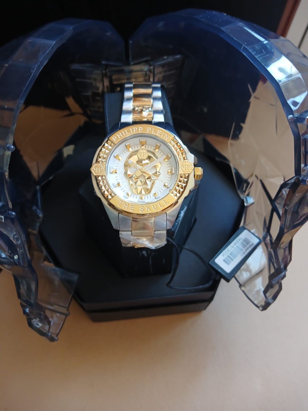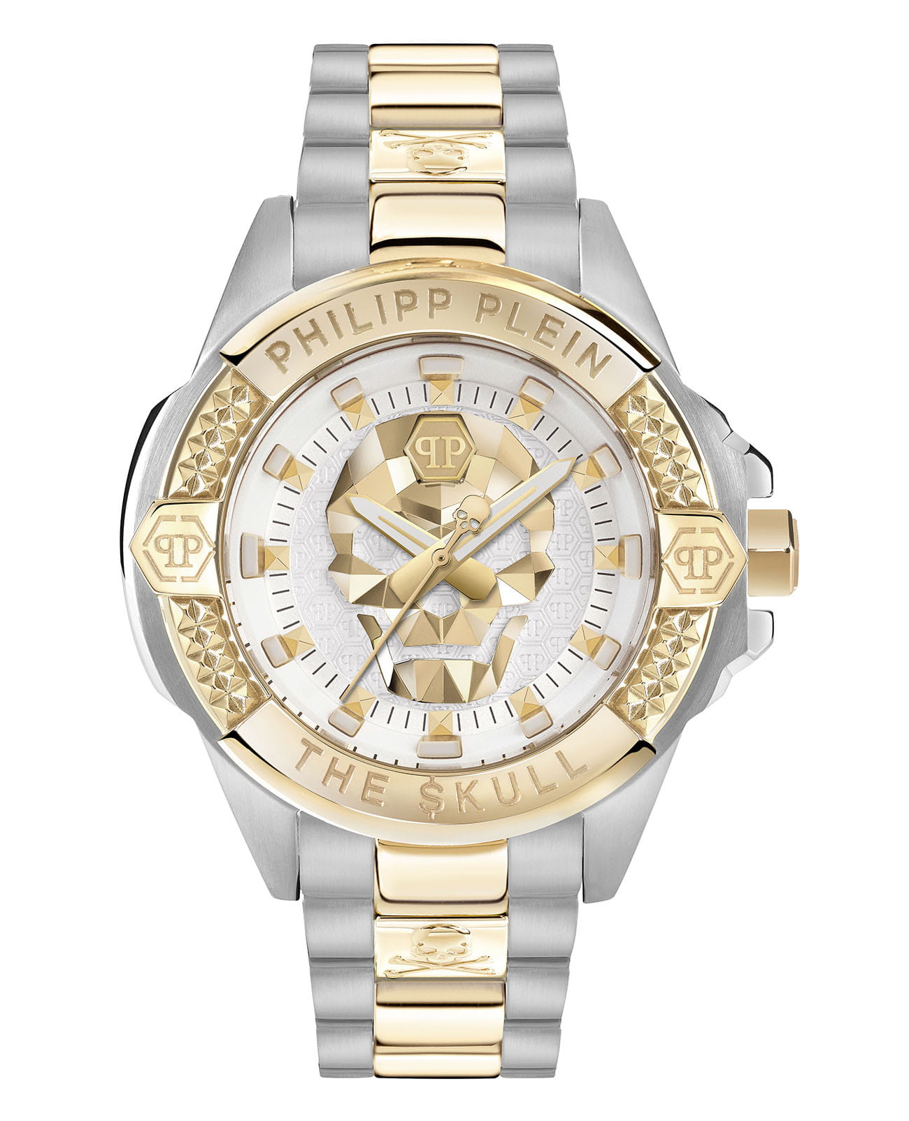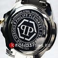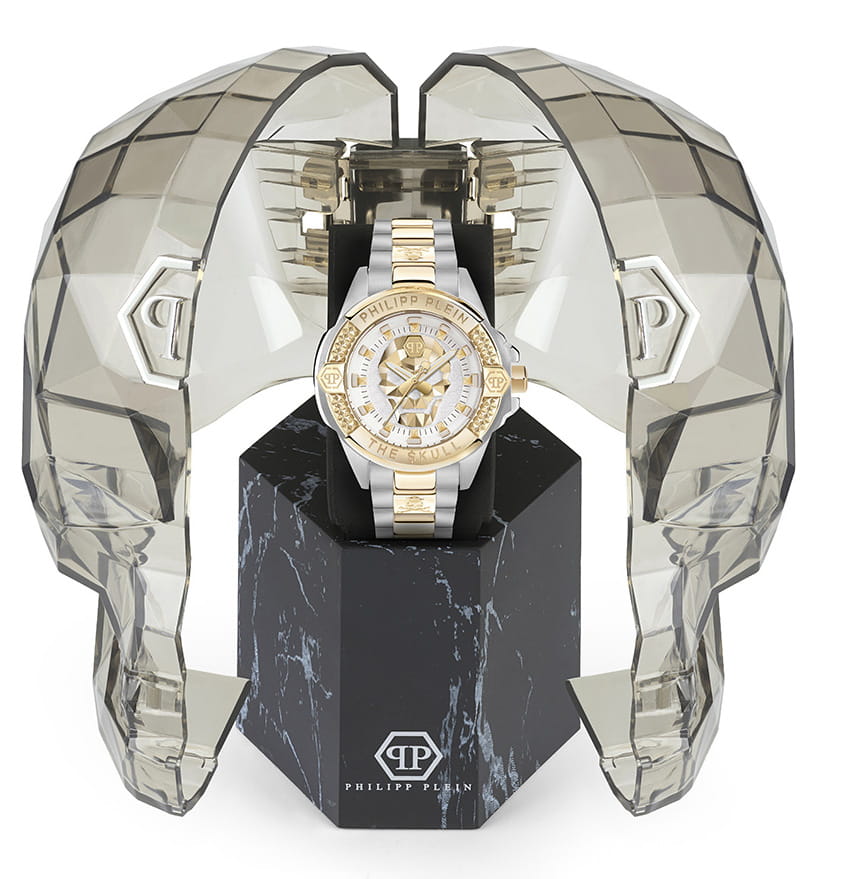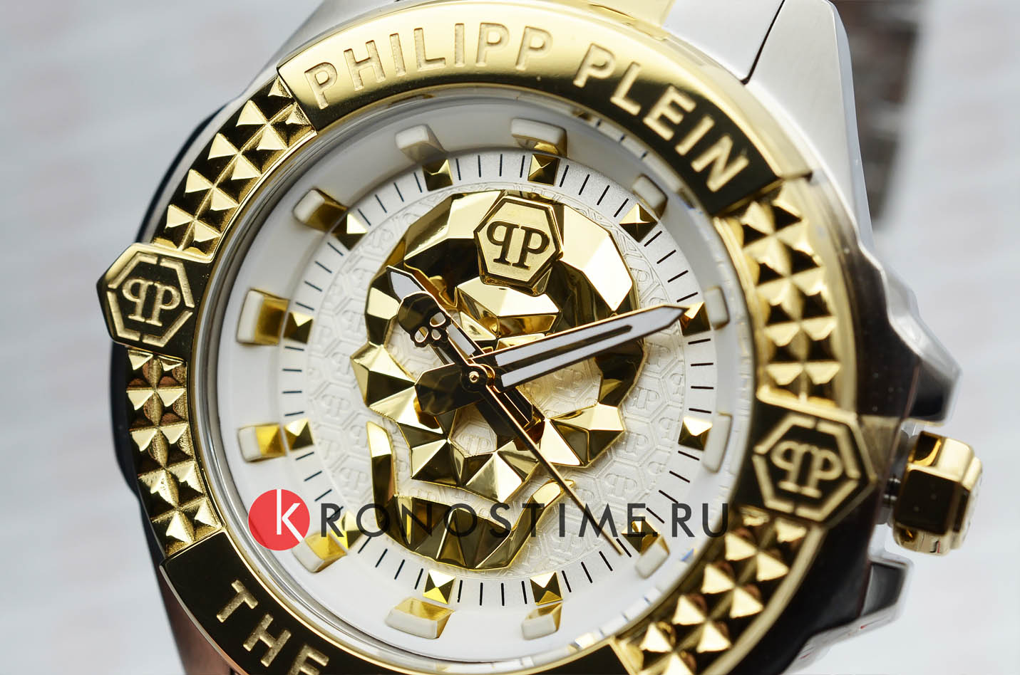 Яркие женские часы с минеральным стекломМинеральное стеклоМинеральное стекло представляет собой искусственно выращенный минерал кварца. Такое стекло отличается особой устойчивостью к повреждениям и царапинам. Уступает по некоторым качествам сапфировому стеклу. Philipp Plein The Skull PWNAA1523, кварцевый механизм с высокой точностью. Класс водозащиты: 50 метров, позволит защитить корпус от случайных брызг или капель дождя. Корпус часов изготовлен из стали с IP-покрытиемIP-покрытиеМетод ионного напыления. Демонстрирует повышенную устойчивость к истиранию, окислению и химическим веществам. Под воздействием высокого давления и температуры около 1500°C молекулы металла надёжно соединяются с частицами корпуса часов.. Циферблат дополнен трехмерным граненым черепом. Шестигранная заводная головка с защитой. Застёжка бабочка с кнопкамиЗастёжка "бабочка"Такой вид застёжки дополняется предохранителями, помогающими избежать случайного раскрытия браслета. Обладают изящным исполнением. .