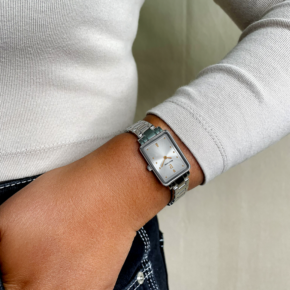 Женские  Pierre Lannier Ariane 051J621. Минеральное стеклоМинеральное стеклоМинеральное стекло представляет собой искусственно выращенный минерал кварца. Такое стекло отличается особой устойчивостью к повреждениям и царапинам. Уступает по некоторым качествам сапфировому стеклу. устойчивое к мелким механическим повреждениям. Центральные часовая, минутная и секундная стрелки. Корпус выполнен из полированной нержавеющей стали. Водостойкость: 30 метров, позволит защитить корпус от случайных брызг или капель дождя. Размер корпуса составляет 21 х 28,4 мм, толщина 6,2 мм. Стальной браслет на раскладной застёжкеРаскладная застёжкаТакой тип застёжки используется только на браслетах из металла. Она никогда не раскрывается полностью, происходит разделение на 2 и более частей. Раскладывающая застёжка снизит вероятность потери часов к минимуму..