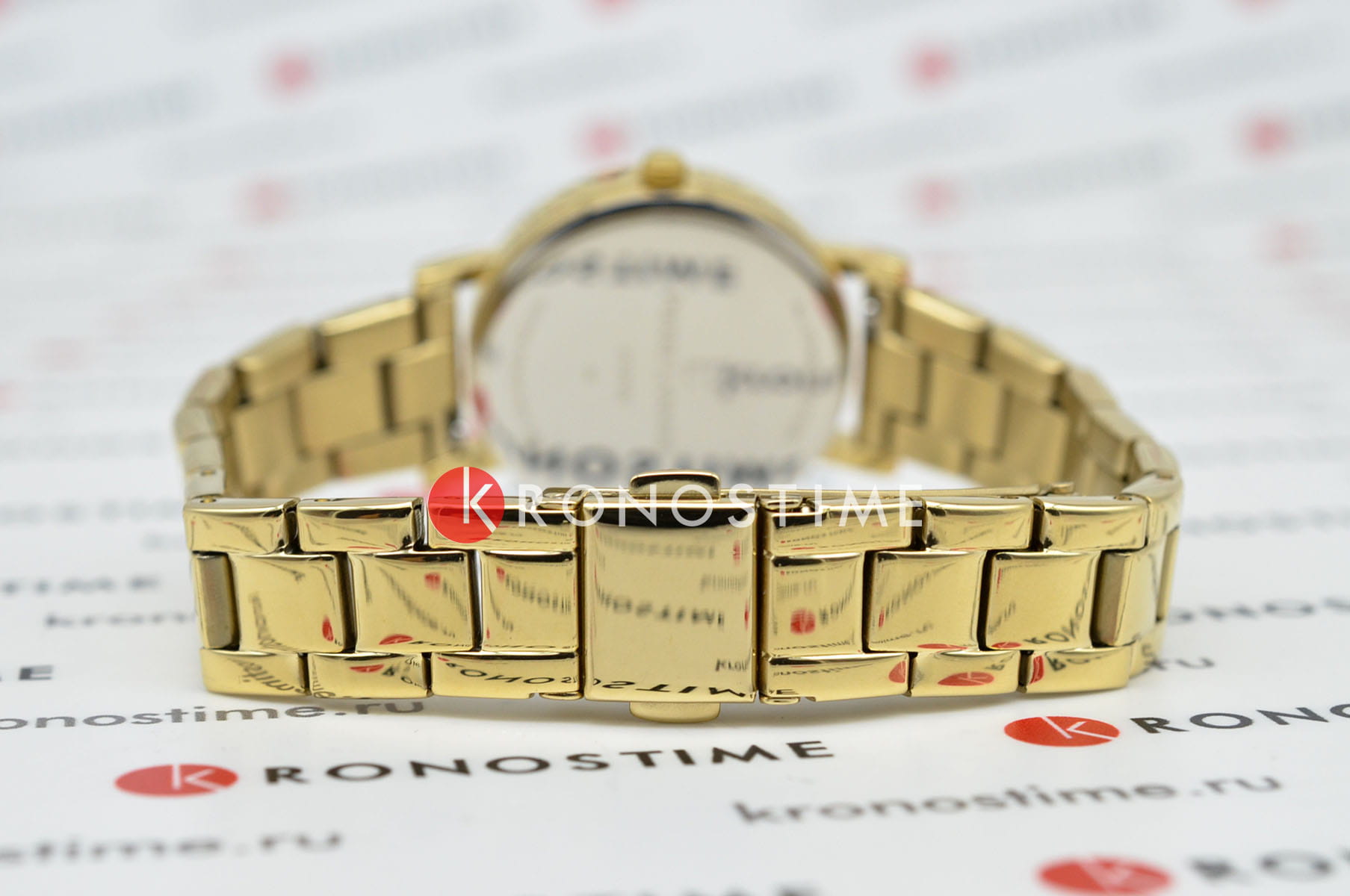 Pierre Lannier 012P562 Multiples — элегантная женская модель, в которой сочетаются современный стиль и утончённая простота. Корпус диаметром 30 мм выполнен из нержавеющей стали с изящным золотистым IP-покрытиемIP-покрытиеМетод ионного напыления. Демонстрирует повышенную устойчивость к истиранию, окислению и химическим веществам. Под воздействием высокого давления и температуры около 1500°C молекулы металла надёжно соединяются с частицами корпуса часов., создающим ощущение тепла и благородства. Циферблат насыщенного зелёного оттенка с эффектом солнечных лучей украшен тонкими золотистыми стрелками и часовыми метками. Композиция оформлена минималистично, подчёркивая утончённость формы и цветовое равновесие. Циферблат защищён прочным минеральным стекломМинеральное стеклоМинеральное стекло представляет собой искусственно выращенный минерал кварца. Такое стекло отличается особой устойчивостью к повреждениям и царапинам. Уступает по некоторым качествам сапфировому стеклу., которое надёжно противостоит повседневным повреждениям. Внутри — точный японский кварцевый механизм, отличающийся стабильностью и долговечностью. Браслет из нержавеющей стали, выполненный в мелком плетении, гармонично дополняет корпус и завершён надёжной раскладной застёжкойРаскладная застёжкаТакой тип застёжки используется только на браслетах из металла. Она никогда не раскрывается полностью, происходит разделение на 2 и более частей. Раскладывающая застёжка снизит вероятность потери часов к минимуму., обеспечивающей комфортное ношение. Водонепроницаемость до 5 ATM делает часы устойчивыми к случайным брызгам и дождю. 012P562 Multiples — это сочетание выразительного цвета, утончённого блеска и точности, подходящее как для повседневного образа, так и для особых случаев.