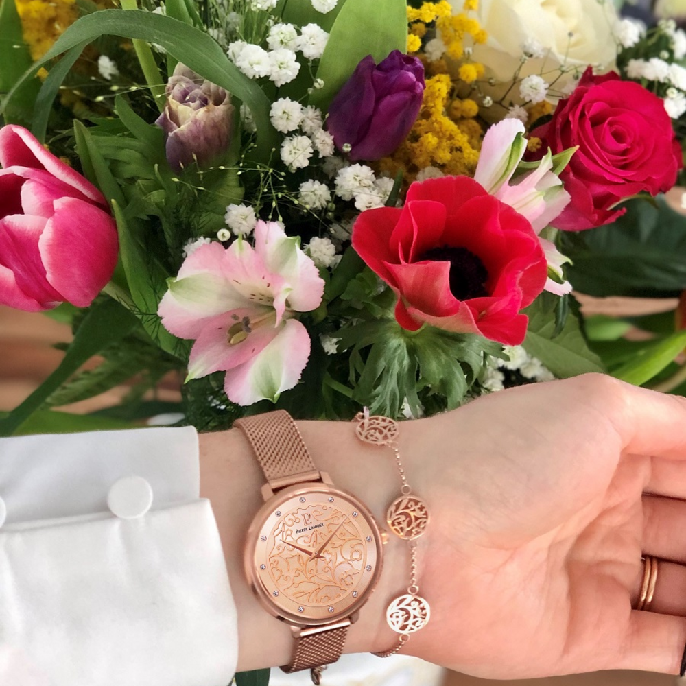 Женские кварцевые часы Pierre Lannier Eolia 041K958. Минеральное стеклоМинеральное стеклоМинеральное стекло представляет собой искусственно выращенный минерал кварца. Такое стекло отличается особой устойчивостью к повреждениям и царапинам. Уступает по некоторым качествам сапфировому стеклу. устойчивое к мелким механическим повреждениям. Центральные часовая и минутная стрелки. Корпус выполнен из нержавеющей стали с IP-покрытиемIP-покрытиеМетод ионного напыления. Демонстрирует повышенную устойчивость к истиранию, окислению и химическим веществам. Под воздействием высокого давления и температуры около 1500°C молекулы металла надёжно соединяются с частицами корпуса часов.. Водостойкость: 50 метров, позволит защитить корпус от случайных брызг или капель дождя. Стальной браслет миланского плетения с раскладной застёжкойРаскладная застёжкаТакой тип застёжки используется только на браслетах из металла. Она никогда не раскрывается полностью, происходит разделение на 2 и более частей. Раскладывающая застёжка снизит вероятность потери часов к минимуму.. Золотисто-розовый циферблат украшен кристаллами.