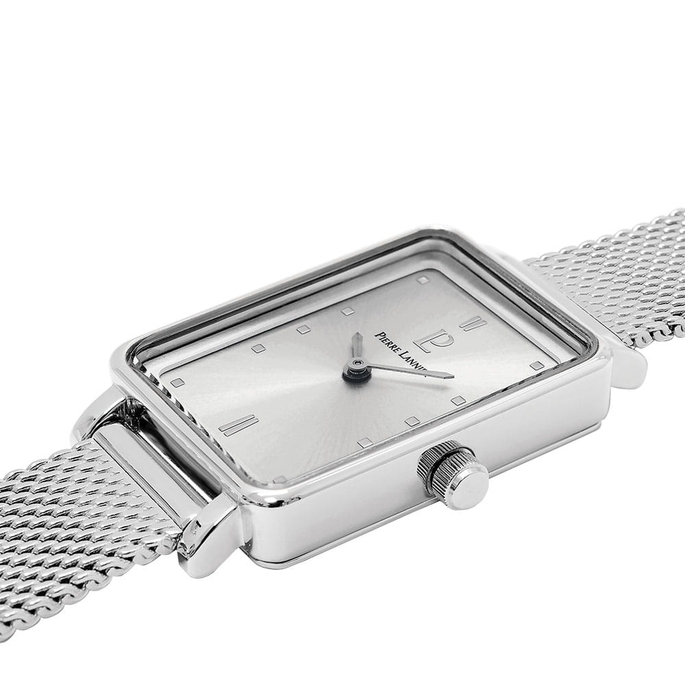 Женские кварцевые часы Pierre Lannier Ariane 056J621. Минеральное стеклоМинеральное стеклоМинеральное стекло представляет собой искусственно выращенный минерал кварца. Такое стекло отличается особой устойчивостью к повреждениям и царапинам. Уступает по некоторым качествам сапфировому стеклу. устойчивое к мелким механическим повреждениям. Центральные часовая и минутная стрелки. Корпус выполнен из нержавеющей стали. Водостойкость: 30 метров, позволит защитить корпус от случайных брызг или капель дождя. Стальной браслет миланского плетения с раскладной застёжкойРаскладная застёжкаТакой тип застёжки используется только на браслетах из металла. Она никогда не раскрывается полностью, происходит разделение на 2 и более частей. Раскладывающая застёжка снизит вероятность потери часов к минимуму..