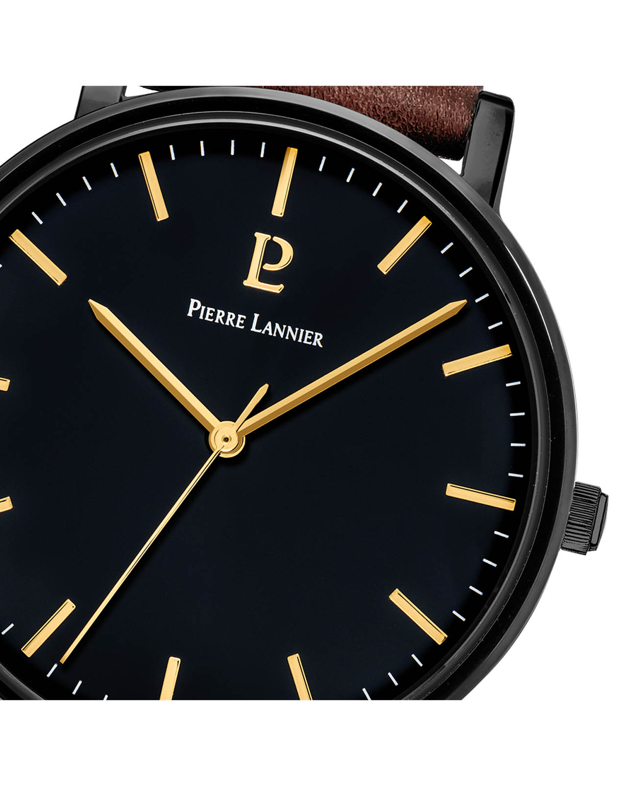Мужские кварцевые часы Pierre Lannier Echo 218F434. Минеральное стеклоМинеральное стеклоМинеральное стекло представляет собой искусственно выращенный минерал кварца. Такое стекло отличается особой устойчивостью к повреждениям и царапинам. Уступает по некоторым качествам сапфировому стеклу. устойчивое к мелким механическим повреждениям. Корпус из нержавеющей стали с IP-покрытиемIP-покрытиеМетод ионного напыления. Демонстрирует повышенную устойчивость к истиранию, окислению и химическим веществам. Под воздействием высокого давления и температуры около 1500°C молекулы металла надёжно соединяются с частицами корпуса часов.. Центральные часовая и минутная стрелки, секундная стрелка вынесена на малый циферблат. Водостойкость: 50 метров, позволит защитить корпус от случайных брызг или капель дождя. Кожаный ремешок на стандартной застёжке.