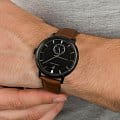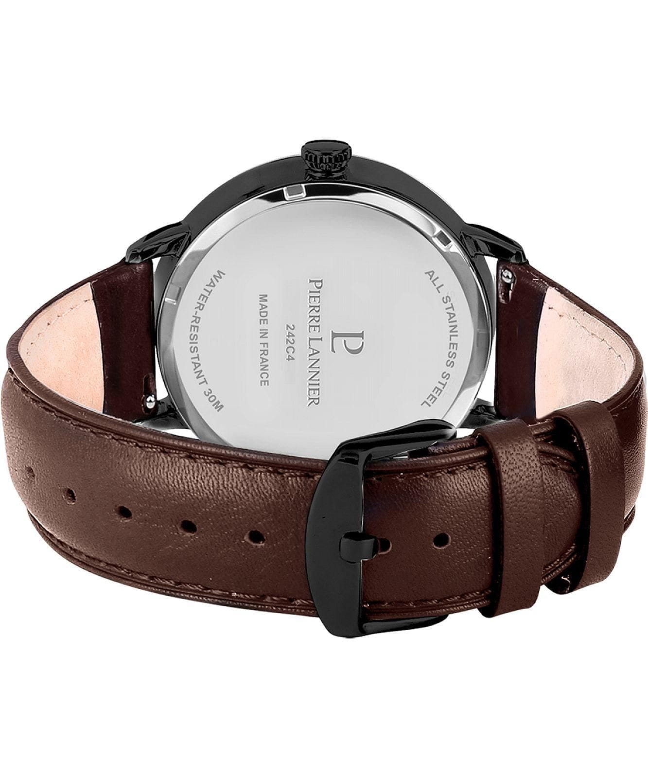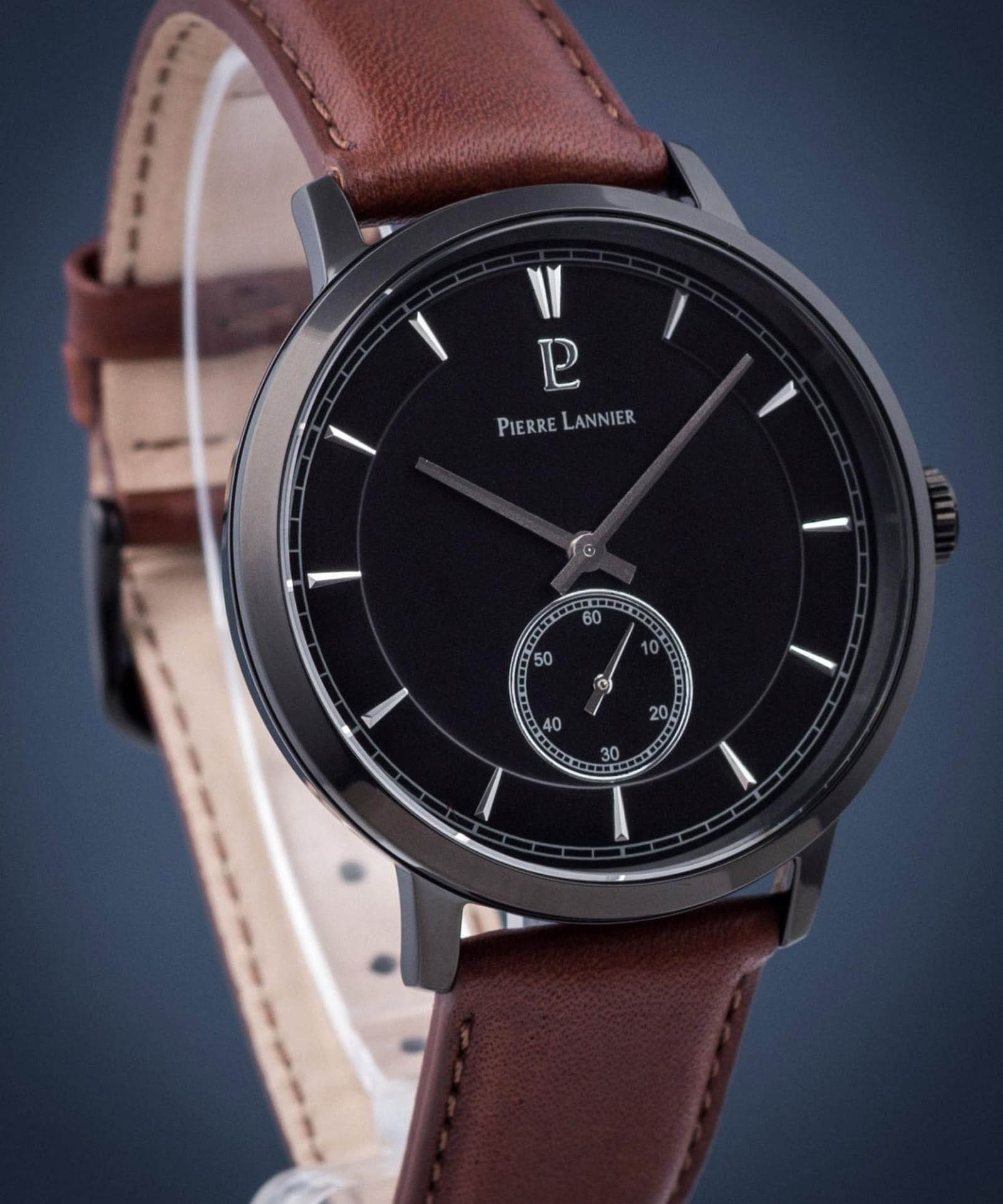 Мужские кварцевые часы Pierre Lannier Allure 242C434. Минеральное стеклоМинеральное стеклоМинеральное стекло представляет собой искусственно выращенный минерал кварца. Такое стекло отличается особой устойчивостью к повреждениям и царапинам. Уступает по некоторым качествам сапфировому стеклу. устойчивое к мелким механическим повреждениям. Центральные часовая и минутная стрелки, секундная стрелка вынесена на малый циферблат. Корпус выполнен из нержавеющей стали с IP-покрытиемIP-покрытиеМетод ионного напыления. Демонстрирует повышенную устойчивость к истиранию, окислению и химическим веществам. Под воздействием высокого давления и температуры около 1500°C молекулы металла надёжно соединяются с частицами корпуса часов.. Водостойкость: 50 метров, позволит защитить корпус от случайных брызг или капель дождя. Кожаный ремешок на стандартной застёжке.
