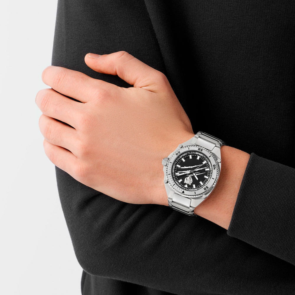 Аксессуар, в котором сталкиваются спорт и стиль, а каждая деталь источает силу и решительность. Мужские кварцевые Plein Sport PS8BA0724 часы. Корпус и браслет часов изотовлены из стали. Минеральное стеклоМинеральное стеклоМинеральное стекло представляет собой искусственно выращенный минерал кварца. Такое стекло отличается особой устойчивостью к повреждениям и царапинам. Уступает по некоторым качествам сапфировому стеклу.. Рифленая заводная головка с защитой. Класс водозащиты: 50 метров, позволит защитить корпус от случайных брызг или капель дождя. Стрелки и метки с люминесцентным покрытиемЛюминесцентное покрытиеПозволяет считывать показания времени в темноте. Производители наносят на стрелки, часовые индексы, безель или поверхность циферблата светонакопительный состав, дающий холодное свечение..