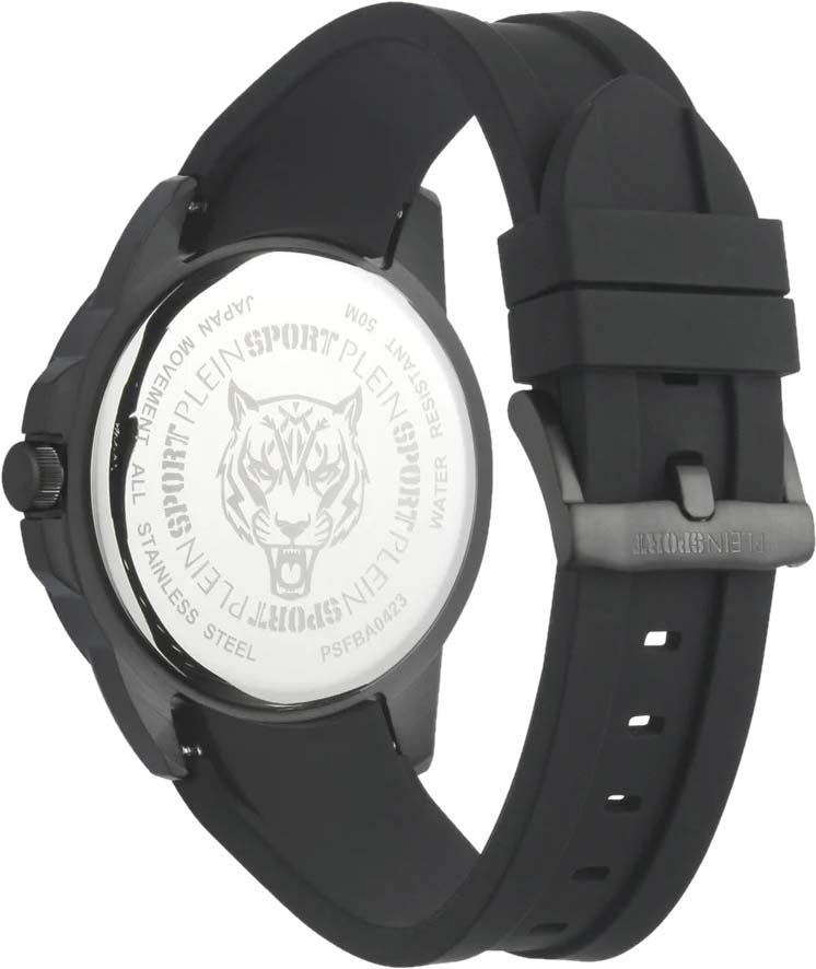 Немецкие мужские кварцевые часы с минеральным стекломМинеральное стеклоМинеральное стекло представляет собой искусственно выращенный минерал кварца. Такое стекло отличается особой устойчивостью к повреждениям и царапинам. Уступает по некоторым качествам сапфировому стеклу. Plein Sport Touchdown PSFBA0423, кварцевый механизм с высокой точностью. Класс водозащиты: 50 метров, позволит защитить корпус от случайных брызг или капель дождя. Корпус выполнен из стали с IP-покрытиемIP-покрытиеМетод ионного напыления. Демонстрирует повышенную устойчивость к истиранию, окислению и химическим веществам. Под воздействием высокого давления и температуры около 1500°C молекулы металла надёжно соединяются с частицами корпуса часов.. Силиконовый ремешок на стандартной застёжке. Минеральное стеклоМинеральное стеклоМинеральное стекло представляет собой искусственно выращенный минерал кварца. Такое стекло отличается особой устойчивостью к повреждениям и царапинам. Уступает по некоторым качествам сапфировому стеклу. устойчивое к мелким механическим повреждениям. Окошко даты находится в положении между 4 и 5 часов.