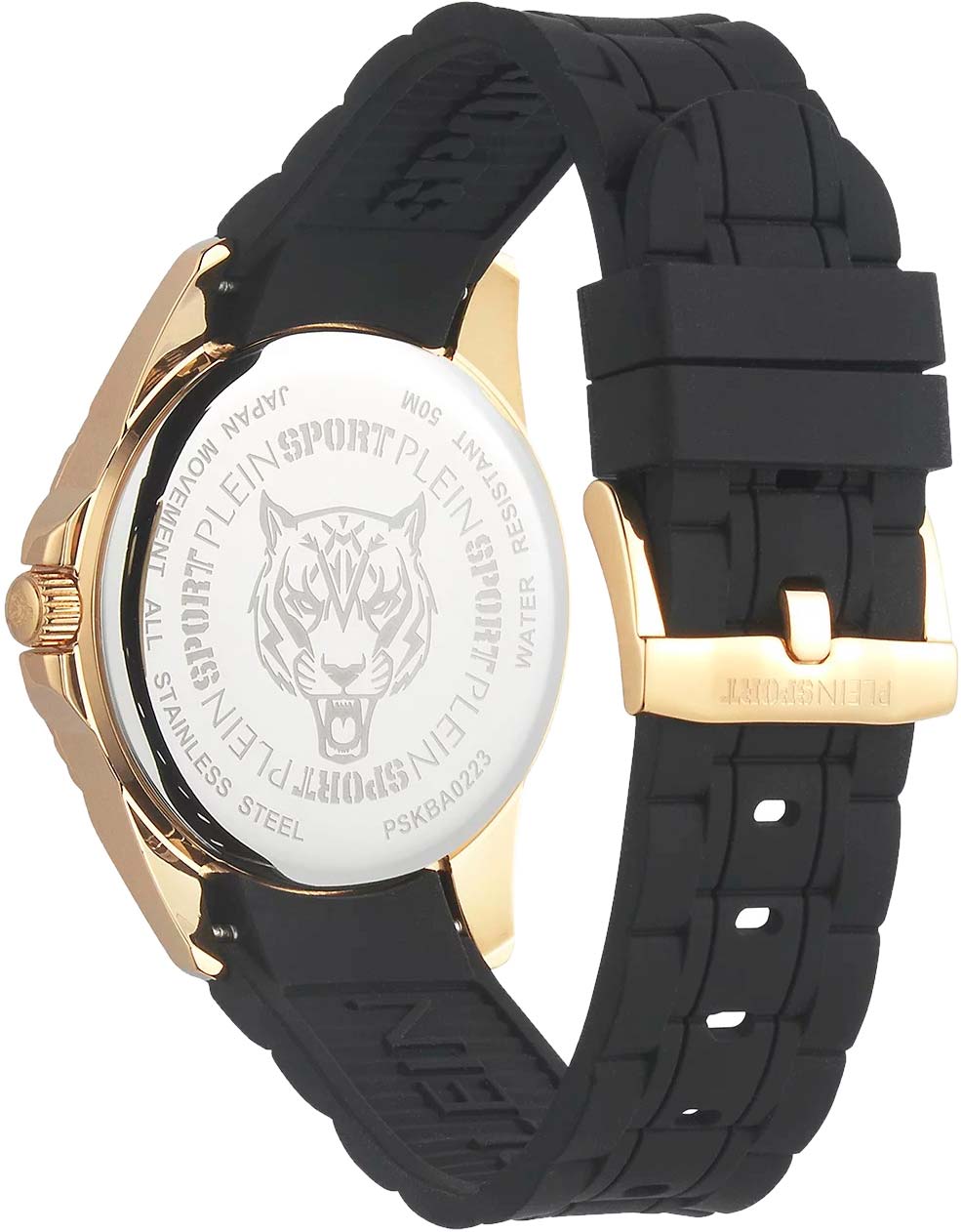 Немецкие женские кварцевые часы с минеральным стекломМинеральное стеклоМинеральное стекло представляет собой искусственно выращенный минерал кварца. Такое стекло отличается особой устойчивостью к повреждениям и царапинам. Уступает по некоторым качествам сапфировому стеклу. Plein Sport Glam PSKBA0223, кварцевый механизм с высокой точностью. Класс водозащиты: 50 метров, позволит защитить корпус от случайных брызг или капель дождя. Корпус часов изготовлен из стали с IP-покрытиемIP-покрытиеМетод ионного напыления. Демонстрирует повышенную устойчивость к истиранию, окислению и химическим веществам. Под воздействием высокого давления и температуры около 1500°C молекулы металла надёжно соединяются с частицами корпуса часов.. Силиконовый ремешок на стандартной застёжке. Стрелки с люминесцентным покрытиемЛюминесцентное покрытиеПозволяет считывать показания времени в темноте. Производители наносят на стрелки, часовые индексы, безель или поверхность циферблата светонакопительный состав, дающий холодное свечение..