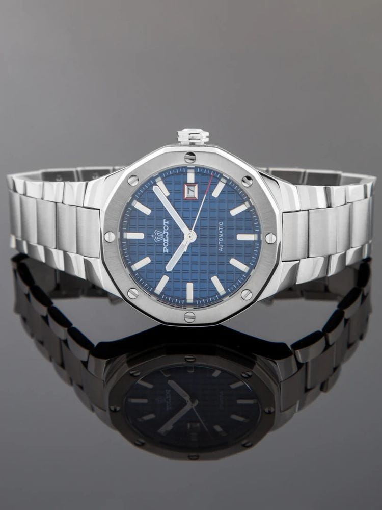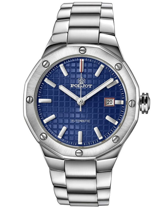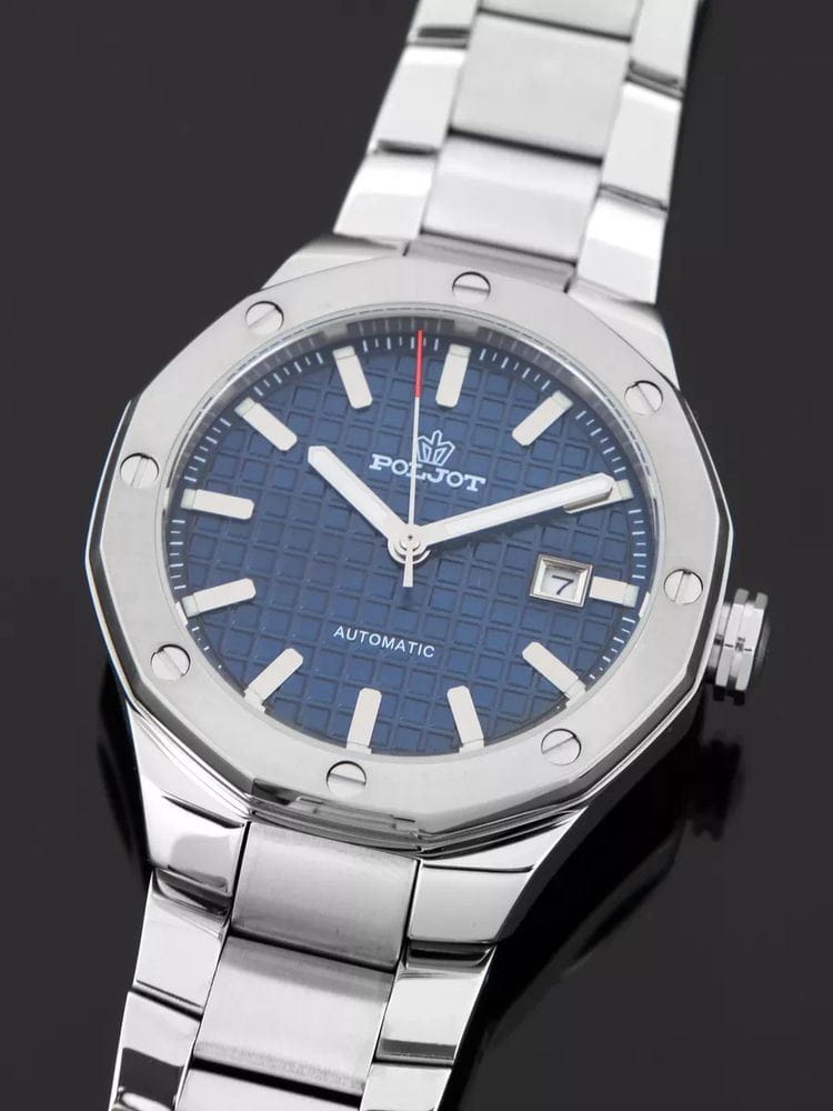 Poljot Ural 8215.361243Б — стильные механические часы с автоподзаводом, сочетающие брутальный характер и современную элегантность. Корпус и браслет выполнены из нержавеющей стали, что придаёт модели монолитность и прочность, а глубокий циферблат с фактурным геометрическим узором подчеркивает премиальный облик. Стальной браслет на застёжке-бабочке с кнопкамиЗастёжка "бабочка"Такой вид застёжки дополняется предохранителями, помогающими избежать случайного раскрытия браслета. Обладают изящным исполнением. . Внутри установлен надёжный японский механизм Miyota 8215, обеспечивающий точный ход и плавную работу стрелок. Широкие метки и стрелки с люминесцентным покрытиемЛюминесцентное покрытиеПозволяет считывать показания времени в темноте. Производители наносят на стрелки, часовые индексы, безель или поверхность циферблата светонакопительный состав, дающий холодное свечение. гарантируют превосходную читаемость в любое время суток, а окно даты добавляет удобства. Прочное минеральное стеклоМинеральное стеклоМинеральное стекло представляет собой искусственно выращенный минерал кварца. Такое стекло отличается особой устойчивостью к повреждениям и царапинам. Уступает по некоторым качествам сапфировому стеклу. защищает циферблат от повреждений, а водонепроницаемость до 10 бар делает часы надёжным спутником как в деловом, так и активном образе жизни. Poljot Ural — воплощение силы, точности и мужского стиля, созданное для тех, кто ценит механику и уверенность в каждой детали.