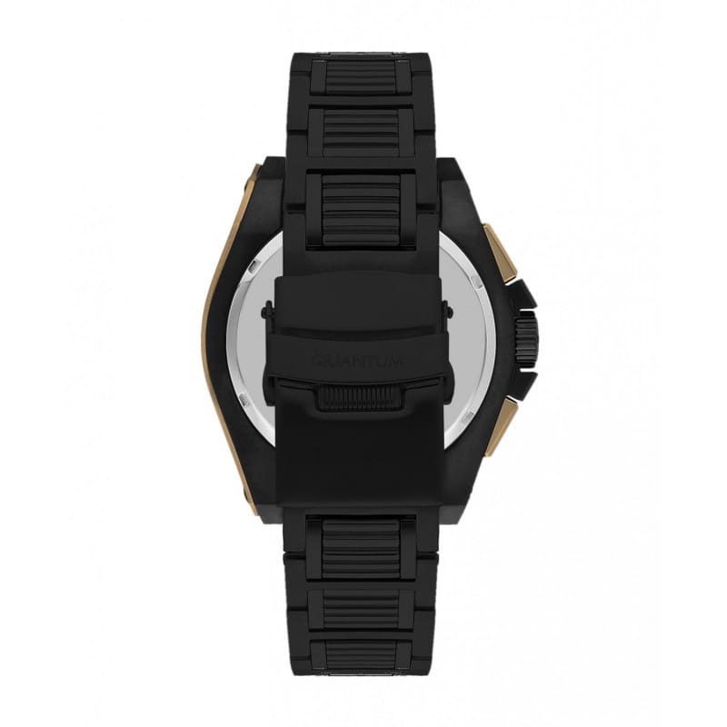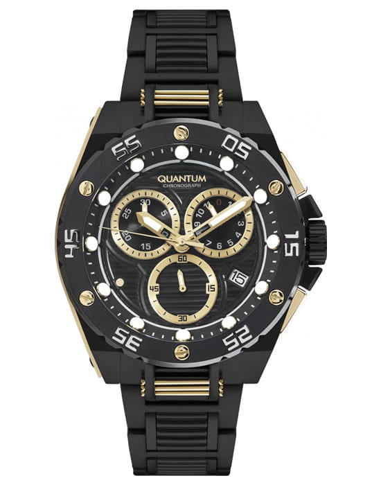 Мужские наручные часы-хронографХронографФункция позволяет измерять отрезки времени с особой точностью: часы, минуты, секунды. Верным признаком хронографа является наличие на циферблате 3 дополнительных окошек-счётчиков. Quantum HNG1062.650, кварцевый механизм с высокой точностью. Минеральное стеклоМинеральное стеклоМинеральное стекло представляет собой искусственно выращенный минерал кварца. Такое стекло отличается особой устойчивостью к повреждениям и царапинам. Уступает по некоторым качествам сапфировому стеклу. устойчивое к появлению царапин, обладающее высокой прозрачностью. Класс водозащиты: 100 метров, позволит плавать, нырять и заниматься другими водными видами спорта. Корпус часов изготовлен из стали с PVD-покрытиемPVDУльтратонкое покрытие наносится в технике вакуумного напыления, сочетает в себе нитрид титана особой прочности со слоем золота или оксида хрома. Несёт в себе декоративную или защитную функцию.. Стрелки с люминесцентным покрытиемЛюминесцентное покрытиеПозволяет считывать показания времени в темноте. Производители наносят на стрелки, часовые индексы, безель или поверхность циферблата светонакопительный состав, дающий холодное свечение.. Стальной браслет с PVD-покрытиемPVDУльтратонкое покрытие наносится в технике вакуумного напыления, сочетает в себе нитрид титана особой прочности со слоем золота или оксида хрома. Несёт в себе декоративную или защитную функцию. на раскладной застёжкеРаскладная застёжкаТакой тип застёжки используется только на браслетах из металла. Она никогда не раскрывается полностью, происходит разделение на 2 и более частей. Раскладывающая застёжка снизит вероятность потери часов к минимуму..