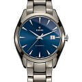 Стильная и лаконичная модель относится к премиальному сегменту. Дизайн отличается классическим обликом и истинной элегантностью, синий циферблат имеет узор «солнечные лучи». Браслет выполнен из плазменной керамикиВысокотехнологичная плазменная керамикаИнновационный материал, технология запатентована. Выплавление керамики осуществляется в печи при 20 000 °C, белоснежный материал под воздействием ультравысокой температуры приобретает уникальный блеск, присущий металлам., материал отличается надёжностью и долговечностью. Автоподзавод. Швейцарский автоматический механизм ETA C07.611 с увеличенным запасом хода до 80 часов. Выпуклое стекло из сапфира с антибликовой поверхностью. Прозрачная задняя крышка. Прямоугольная апертура даты. . Диаметр корпуса: 42 мм.
