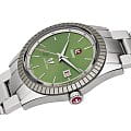 Премиальная модель стала современной интерпретацией знаковой линейки 1957 года, воплощающей ретро-элементы в новом формате. Зелёный циферблат в лаконичном исполнении дополнен фирменными логотипами. Часы выполнены из долговечной стали 316L, исключением стал фигурный безельБезельВнешний ободок, закрепляющий стекло. В спортивных часах так называется поворотное кольцо с делениями на циферблате, выполняет роль таймера – замеряет отрезки времени на шкале. Неподвижный безель – элемент декора. Однонаправленно вращающийся безель на дайверских часах позволяет фиксировать моменты погружения и выныривания на поверхность. из плазменной керамикиВысокотехнологичная плазменная керамикаИнновационный материал, технология запатентована. Выплавление керамики осуществляется в печи при 20 000 °C, белоснежный материал под воздействием ультравысокой температуры приобретает уникальный блеск, присущий металлам.. Автоматический калибр ETA C07.611 швейцарского производства с запасом хода на 80 часов. Для защиты циферблата и прозрачной задней крышки выбрано сапфировое стекло. Водонепроницаемость WR 50. Браслет с . Прямоугольная апертура даты. Диаметр корпуса: 41,8 мм.
