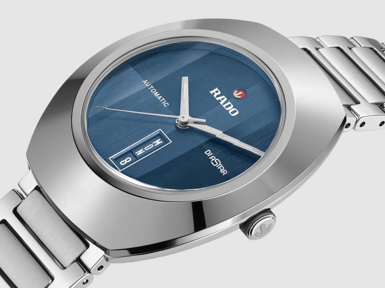 Уникальный DiaStar Original имеет диаметр 38 мм и водонепроницаемость до 100 м. Ceramos™CeramosМатериал являет собой инновационное сочетание высокотехнологичной керамики и сплава металла. Он объединяет керамическую устойчивость к царапинам и металлический роскошный блеск. с полированными углами и деталями, установленными поверх соответствующего монохромного корпуса из нержавеющей стали, эти красивые часы дополнены параллельным граненым сапфировым стекломСапфировое стеклоПрочный и надёжный материал из кристалла сапфира синтетического происхождения, характеризующийся особой твёрдостью и устойчивостью к царапинам и повреждениям.. Технические характеристики включают синий матовый циферблат с двумя направлениями, стрелки цвета родия с белым покрытием Super-LumiNova® и апертура даты на отметке 6 часов, соответствующий цвету циферблата. Внутри автоматический механизм Rado R764 с антимагнитным Nivachron™Nivachron™Специально разработанный инновационный сплав Nivachron™ повышает устойчивость часов к воздействию магнитных полей. обеспечивает 80 часов запаса хода. Браслет изготовлен из полированной и матовой нержавеющей стали.