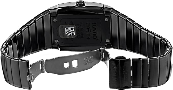 Часы Rado Sintra R13725709, произведение искусства и технологическое чудо, станут прекрасным дополнением к коллекции любого мужчины. Эти швейцарские часы оснащены кварцевым механизмом с указателем даты и тремя стрелками, заключенным в бочкообразный корпус из высокотехнологичной керамикиВысокотехнологичная керамикаИнновационный запатентованный Rado материал с гладкой или матовой поверхностью. Керамика за счёт кристаллической структуры обладает повышенной устойчивостью от возникновения царапин. Материал способен принимать температуру тела человека, обеспечивая невероятный комфорт при ношении.. Сапфировое стеклоСапфировое стеклоПрочный и надёжный материал из кристалла сапфира синтетического происхождения, характеризующийся особой твёрдостью и устойчивостью к царапинам и повреждениям. устойчивое к появлению царапин, обладающее высокой прозрачностью. Класс водозащиты: 30 метров, позволит защитить корпус от случайных брызг или капель дождя. Браслет из высокотехнологичной керамикиВысокотехнологичная керамикаИнновационный запатентованный Rado материал с гладкой или матовой поверхностью. Керамика за счёт кристаллической структуры обладает повышенной устойчивостью от возникновения царапин. Материал способен принимать температуру тела человека, обеспечивая невероятный комфорт при ношении. на раскладной застёжкеРаскладная застёжкаТакой тип застёжки используется только на браслетах из металла. Она никогда не раскрывается полностью, происходит разделение на 2 и более частей. Раскладывающая застёжка снизит вероятность потери часов к минимуму..