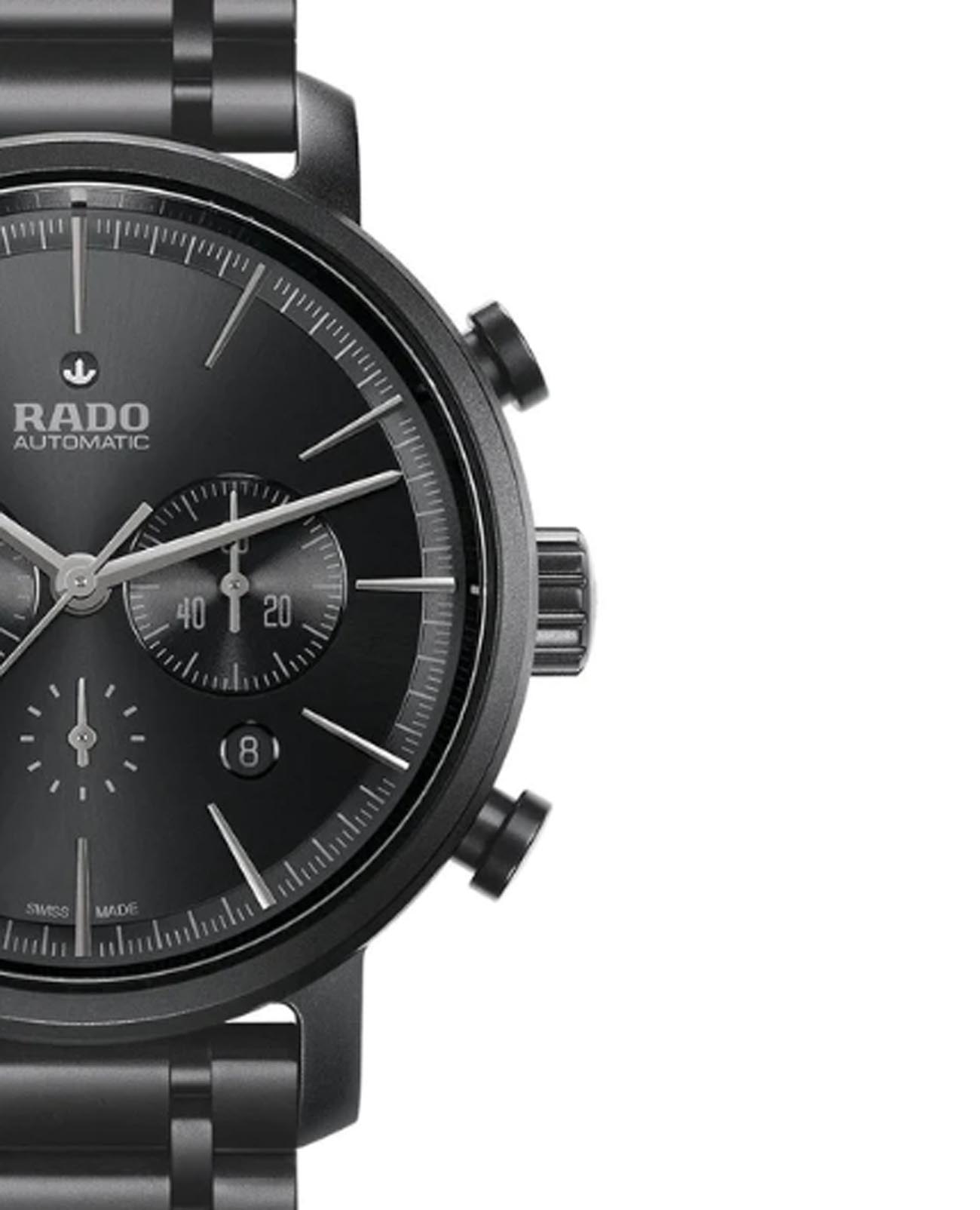 Мужские швейцарские часы-хронографХронографФункция позволяет измерять отрезки времени с особой точностью: часы, минуты, секунды. Верным признаком хронографа является наличие на циферблате 3 дополнительных окошек-счётчиков. Rado HyperChrome Automatic Chronograph R14090192. Корпус часов изготовлен из высокотехнологичной керамикиВысокотехнологичная керамикаИнновационный запатентованный Rado материал с гладкой или матовой поверхностью. Керамика за счёт кристаллической структуры обладает повышенной устойчивостью от возникновения царапин. Материал способен принимать температуру тела человека, обеспечивая невероятный комфорт при ношении.. Сапфировое стеклоСапфировое стеклоПрочный и надёжный материал из кристалла сапфира синтетического происхождения, характеризующийся особой твёрдостью и устойчивостью к царапинам и повреждениям. устойчивое к мелким механическим повреждениям. Окошко даты находится в положении между 4 и 5 часов. Класс водозащиты: 100 метров, позволит плавать, нырять и заниматься другими водными видами спорта. Браслет из высокотехнологичной керамикиВысокотехнологичная керамикаИнновационный запатентованный Rado материал с гладкой или матовой поверхностью. Керамика за счёт кристаллической структуры обладает повышенной устойчивостью от возникновения царапин. Материал способен принимать температуру тела человека, обеспечивая невероятный комфорт при ношении. на раскладной застёжкеРаскладная застёжкаТакой тип застёжки используется только на браслетах из металла. Она никогда не раскрывается полностью, происходит разделение на 2 и более частей. Раскладывающая застёжка снизит вероятность потери часов к минимуму..