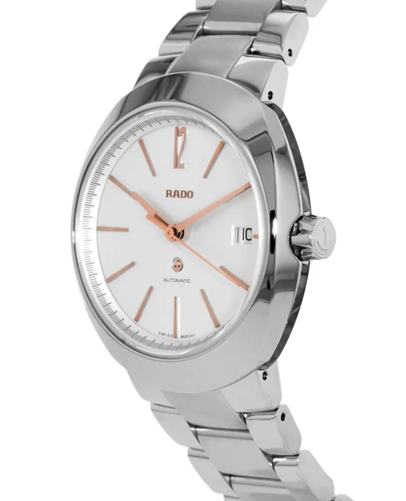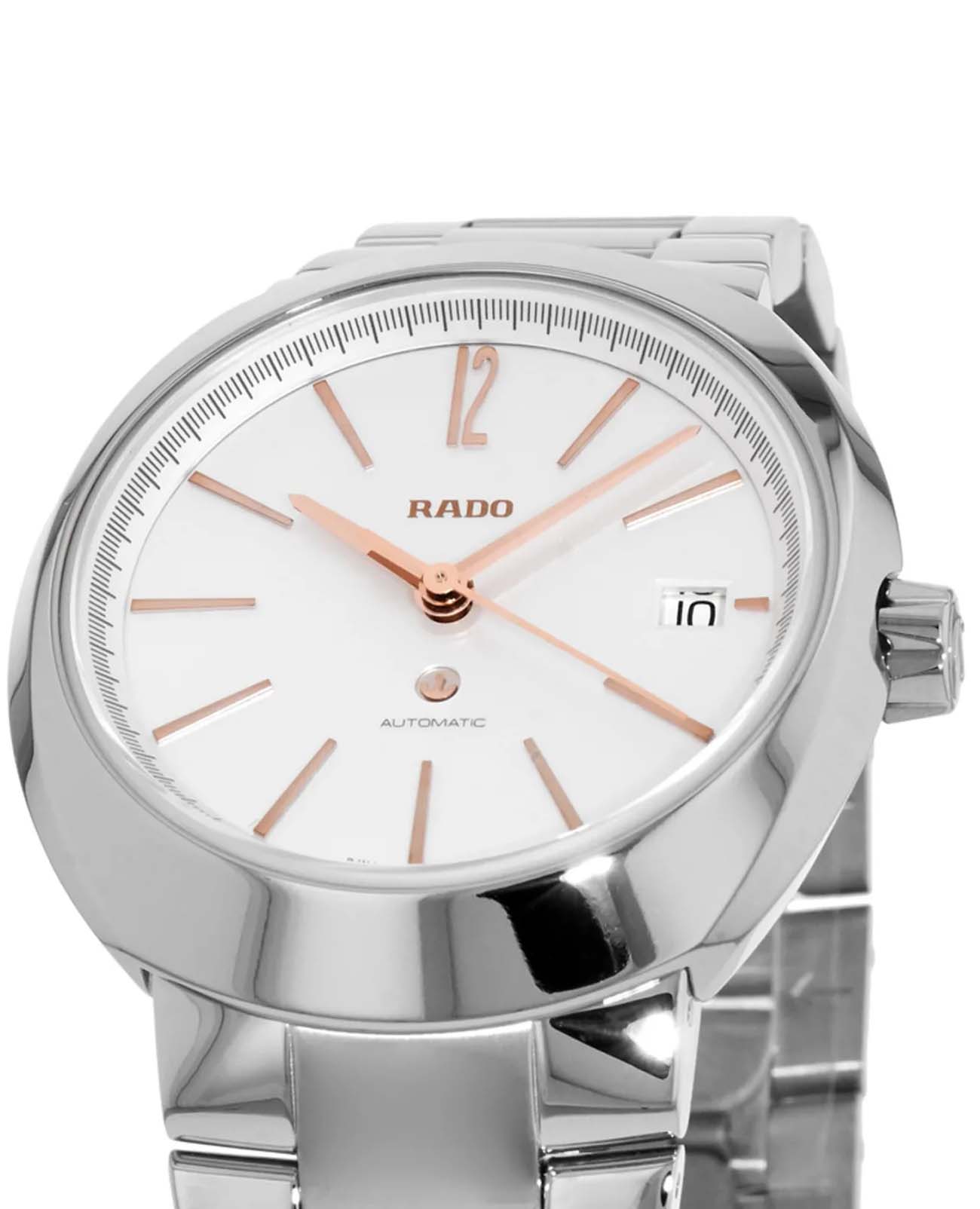 Мужские механические швейцарские часы Rado Rado D-Star R15513113. Сапфировое стеклоСапфировое стеклоПрочный и надёжный материал из кристалла сапфира синтетического происхождения, характеризующийся особой твёрдостью и устойчивостью к царапинам и повреждениям. устойчивое к мелким механическим повреждениям. Корпус часов изготовлен из нержавеющей стали. Окошко даты находится в положении 3 часа. Класс водозащиты: 100 метров, позволит плавать, нырять и заниматься другими водными видами спорта. Браслет из нержавеющей стали на раскладной застёжкеРаскладная застёжкаТакой тип застёжки используется только на браслетах из металла. Она никогда не раскрывается полностью, происходит разделение на 2 и более частей. Раскладывающая застёжка снизит вероятность потери часов к минимуму..