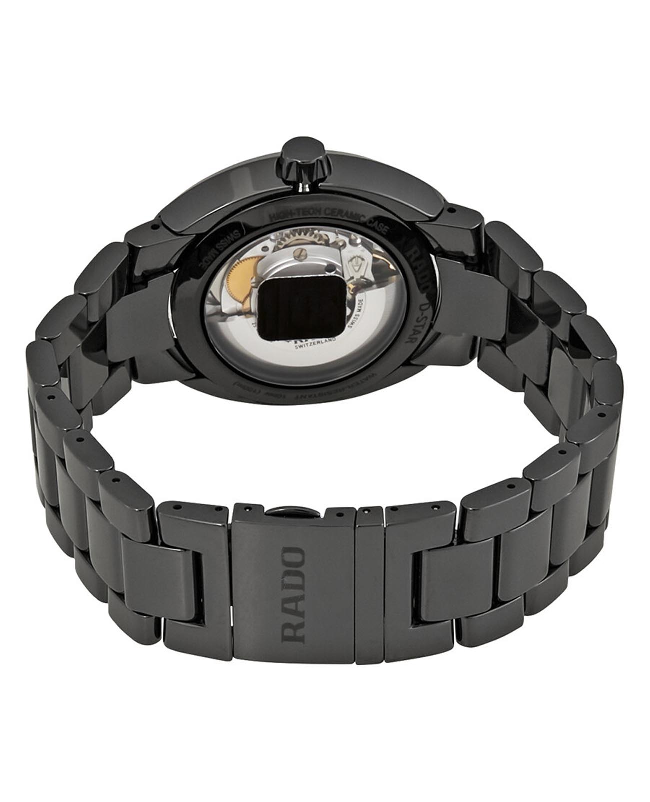 Мужские механические швейцарские часы Rado Rado D-Star R15610172. Сапфировое стеклоСапфировое стеклоПрочный и надёжный материал из кристалла сапфира синтетического происхождения, характеризующийся особой твёрдостью и устойчивостью к царапинам и повреждениям. устойчивое к мелким механическим повреждениям. Корпус часов изготовлен из высокотехнологичной керамикиВысокотехнологичная керамикаИнновационный запатентованный Rado материал с гладкой или матовой поверхностью. Керамика за счёт кристаллической структуры обладает повышенной устойчивостью от возникновения царапин. Материал способен принимать температуру тела человека, обеспечивая невероятный комфорт при ношении.. Окошко даты находится в положении 6 часов. Класс водозащиты: 100 метров, позволит плавать, нырять и заниматься другими водными видами спорта. Браслет из высокотехнологичной керамикиВысокотехнологичная керамикаИнновационный запатентованный Rado материал с гладкой или матовой поверхностью. Керамика за счёт кристаллической структуры обладает повышенной устойчивостью от возникновения царапин. Материал способен принимать температуру тела человека, обеспечивая невероятный комфорт при ношении. на раскладной застёжкеРаскладная застёжкаТакой тип застёжки используется только на браслетах из металла. Она никогда не раскрывается полностью, происходит разделение на 2 и более частей. Раскладывающая застёжка снизит вероятность потери часов к минимуму..
