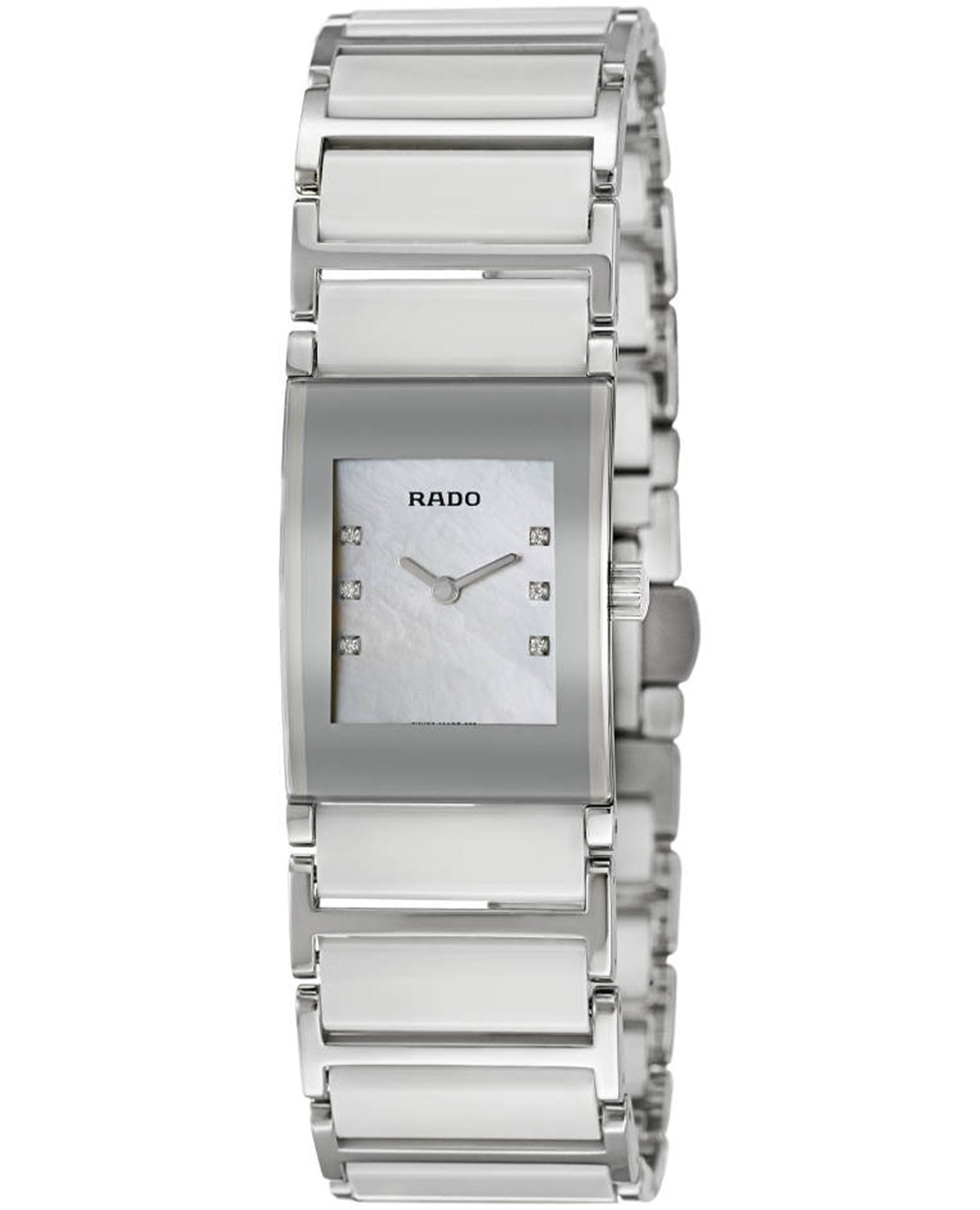 Женские часы Rado Integral Diamonds R20747901 с надёжным кварцевым механизмом. Сапфировое стеклоСапфировое стеклоПрочный и надёжный материал из кристалла сапфира синтетического происхождения, характеризующийся особой твёрдостью и устойчивостью к царапинам и повреждениям. устойчивое к мелким механическим повреждениям. Корпус выполнен из нержавеющей стали. Класс водозащиты: 30 метров, позволит защитить корпус от случайных брызг или капель дождя. Стальной браслет с CeramosCeramosМатериал являет собой инновационное сочетание высокотехнологичной керамики и сплава металла. Он объединяет керамическую устойчивость к царапинам и металлический роскошный блеск. на раскладной застёжкеРаскладная застёжкаТакой тип застёжки используется только на браслетах из металла. Она никогда не раскрывается полностью, происходит разделение на 2 и более частей. Раскладывающая застёжка снизит вероятность потери часов к минимуму.. Циферблат декорирован бриллиантами.
