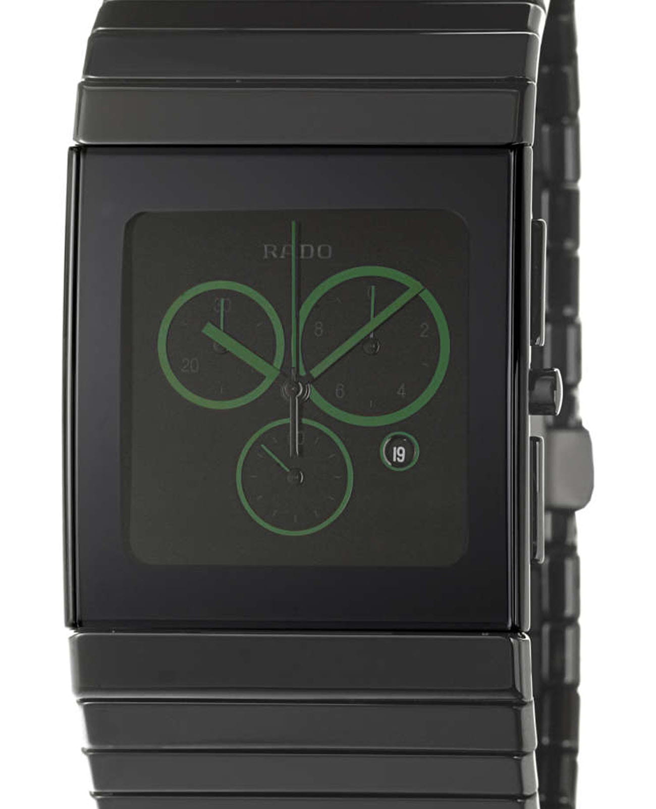 Мужские швейцарские наручные часы- хронографХронографФункция позволяет измерять отрезки времени с особой точностью: часы, минуты, секунды. Верным признаком хронографа является наличие на циферблате 3 дополнительных окошек-счётчиков. Rado Ceramica R21714192, кварцевый механизм с высокой точностью. Сапфировое стеклоСапфировое стеклоПрочный и надёжный материал из кристалла сапфира синтетического происхождения, характеризующийся особой твёрдостью и устойчивостью к царапинам и повреждениям. устойчивое к появлению царапин, обладающее высокой прозрачностью. Класс водозащиты: 30 метров, позволит защитить корпус от случайных брызг или капель дождя. Браслет из высокотехнологичной плазменной керамикиВысокотехнологичная плазменная керамикаИнновационный материал, технология запатентована. Выплавление керамики осуществляется в печи при 20 000 °C, белоснежный материал под воздействием ультравысокой температуры приобретает уникальный блеск, присущий металлам. на раскладной застёжкеРаскладная застёжкаТакой тип застёжки используется только на браслетах из металла. Она никогда не раскрывается полностью, происходит разделение на 2 и более частей. Раскладывающая застёжка снизит вероятность потери часов к минимуму..