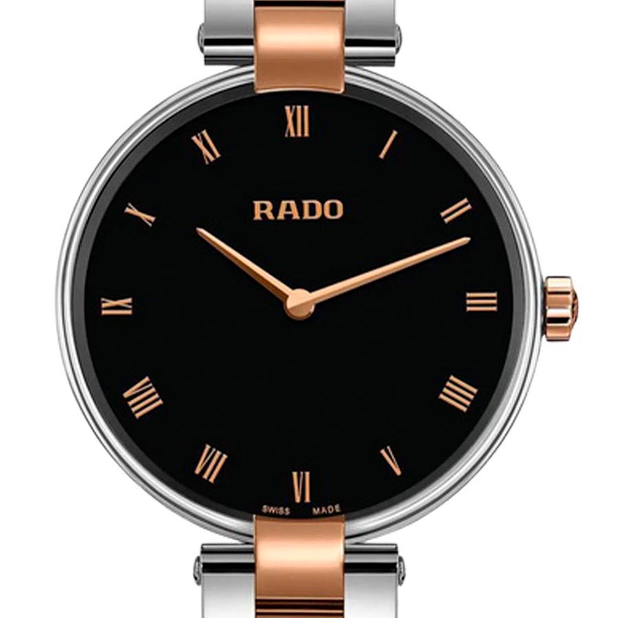 Швейцарские женские часы Rado Coupole R22850173, кварцевый механизм с высокой точностью. Сапфировое стеклоСапфировое стеклоПрочный и надёжный материал из кристалла сапфира синтетического происхождения, характеризующийся особой твёрдостью и устойчивостью к царапинам и повреждениям. устойчивое к появлению царапин, обладающее высокой прозрачностью. Корпус часов изготовлен из нержавеющей стали. Класс водозащиты: 50 метров, позволит защитить корпус от случайных брызг или капель дождя. Стальной браслет с частичным  PVD-покрытиемPVDУльтратонкое покрытие наносится в технике вакуумного напыления, сочетает в себе нитрид титана особой прочности со слоем золота или оксида хрома. Несёт в себе декоративную или защитную функцию. на раскладной застёжкеРаскладная застёжкаТакой тип застёжки используется только на браслетах из металла. Она никогда не раскрывается полностью, происходит разделение на 2 и более частей. Раскладывающая застёжка снизит вероятность потери часов к минимуму..
