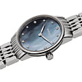 Роскошные часы в лаконичном оформлении помогут выразить ваш тонкий вкус и любовь к элегантным вещам. Синий перламутровый циферблат инкрустирован бриллиантами, 4 драгоценных камня в 0,026 карат и 8 – в 0,016 карат. За высокую точность хода отвечает кварцевый швейцарский механизм ETA 280.002. Антибликовое покрытие сапфирового стекла. Стальной браслет оригинального плетения. Водостойкость 50 метров. . Диаметр корпуса: 27 мм.