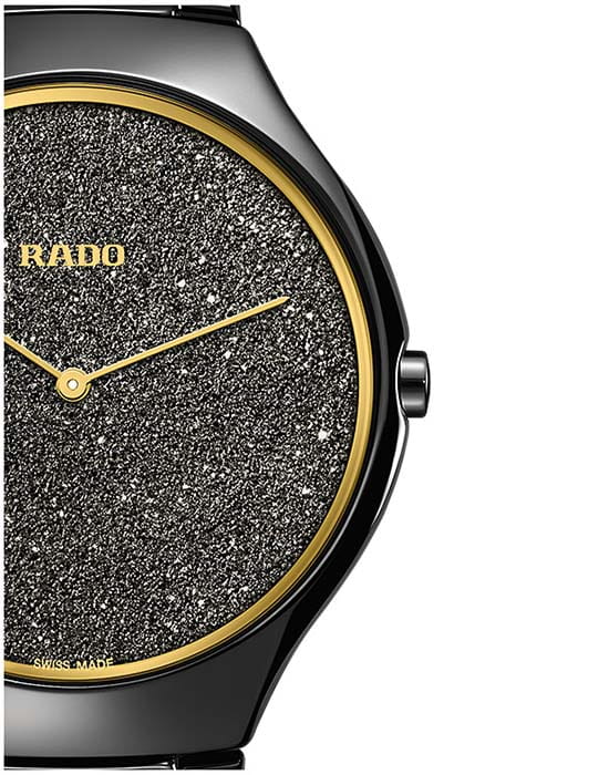 Премиальный аксессуар отличается оригинальным дизайном циферблата, имеющего мерцающую зерненую структуру. Часы станут настоящим украшением вашего запястья и помогут всегда находиться в центре внимания. Швейцарский кварцевый калибр ETA 282.001 (толщина – 1 мм). Моноблочный корпус и браслет из высокотехнологичной керамикиВысокотехнологичная керамикаИнновационный запатентованный Rado материал с гладкой или матовой поверхностью. Керамика за счёт кристаллической структуры обладает повышенной устойчивостью от возникновения царапин. Материал способен принимать температуру тела человека, обеспечивая невероятный комфорт при ношении.. Водонепроницаемость 3 бар. Сапфировое стекло с антибликовым покрытием. . Диаметр корпуса: 39 мм.