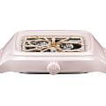 Женские механические часы с автоподзаводом Rado из коллекции True Square — это уникальное сочетание передовых технологий и высокого часового искусства. Корпус квадратной формы, размером 38 мм и толщиной 9,7 мм, выполнен из цельного блока высокотехнологичной керамикиВысокотехнологичная керамикаИнновационный запатентованный Rado материал с гладкой или матовой поверхностью. Керамика за счёт кристаллической структуры обладает повышенной устойчивостью от возникновения царапин. Материал способен принимать температуру тела человека, обеспечивая невероятный комфорт при ношении. розового цвета, что обеспечивает лёгкость, гипоаллергенность и исключительную прочность. Циферблат бежевого цвета с эффектом «солнечные лучи» оформлен накладными индексами розового золота, заполненными люминесцентным покрытиемЛюминесцентное покрытиеПозволяет считывать показания времени в темноте. Производители наносят на стрелки, часовые индексы, безель или поверхность циферблата светонакопительный состав, дающий холодное свечение. Super-Luminova®. Особенностью модели является скелетонизированная архитектура «open heart», через которую видны декорированные элементы механизма: кольцевая шлифовка на видимой части механизма и узор «Côtes de Genève» на плате. В центре циферблата — подвижный якорь розового цвета, символ бренда. Циферблат защищён плоским сапфировым стекломСапфировое стеклоПрочный и надёжный материал из кристалла сапфира синтетического происхождения, характеризующийся особой твёрдостью и устойчивостью к царапинам и повреждениям.. Механизм — автоматический с запасом хода 80 часов, 25 камнями и антимагнитной пружиной Nivachron™Nivachron™Специально разработанный инновационный сплав Nivachron™ повышает устойчивость часов к воздействию магнитных полей.. Часы оснащены браслетом из высокотехнологичной керамикиВысокотехнологичная керамикаИнновационный запатентованный Rado материал с гладкой или матовой поверхностью. Керамика за счёт кристаллической структуры обладает повышенной устойчивостью от возникновения царапин. Материал способен принимать температуру тела человека, обеспечивая невероятный комфорт при ношении. розового цвета с застёжкой «бабочка» с кнопкамиЗастёжка "бабочка"Такой вид застёжки дополняется предохранителями, помогающими избежать случайного раскрытия браслета. Обладают изящным исполнением. из титана. Водонепроницаемость 50 м позволяет использовать часы в повседневных условиях. Гарантия — 2 года. Идеальный выбор для тех, кто ценит инновации, дизайн и швейцарское качество.