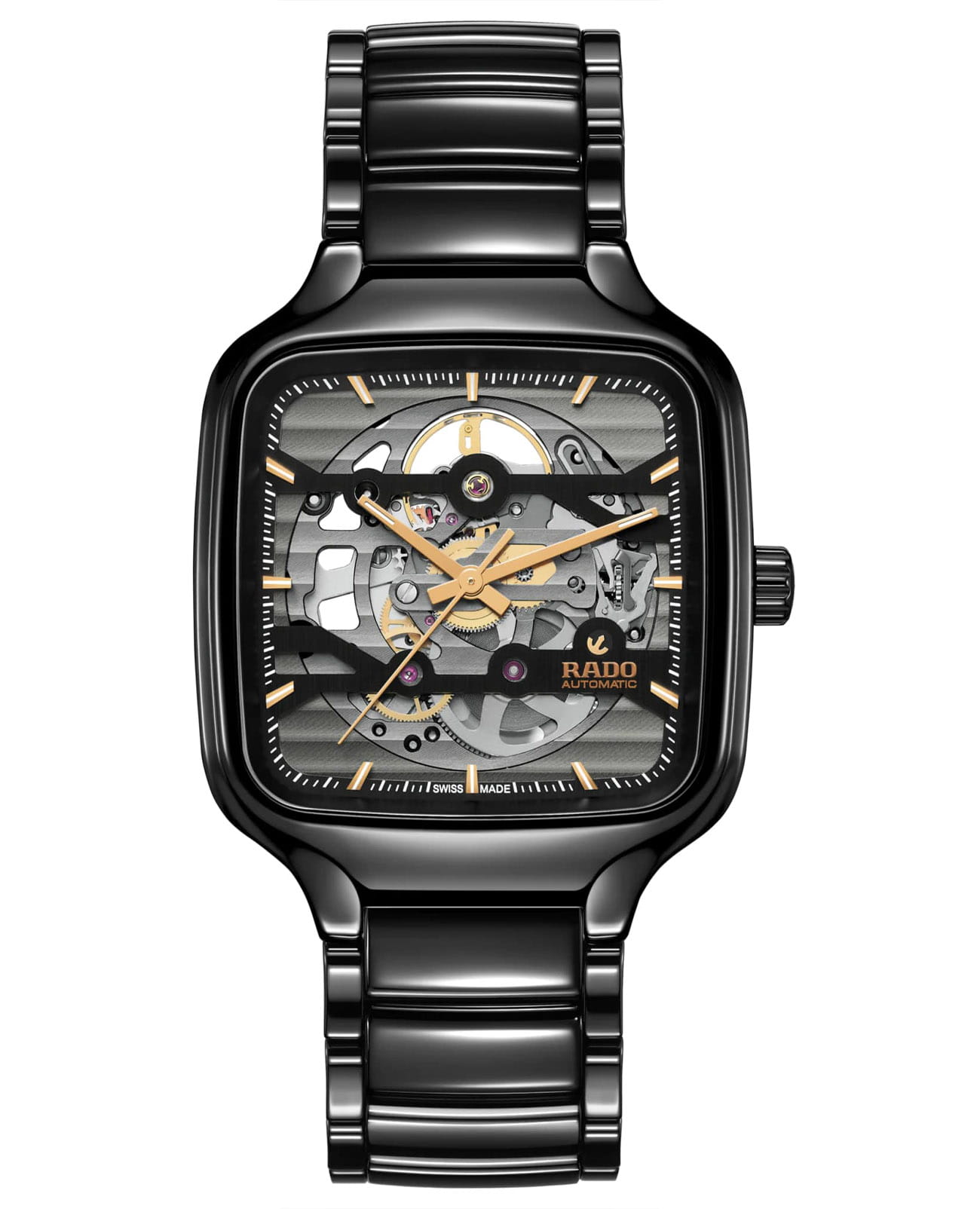 Швейцарские керамические мужские механические часы Rado True Square Automatic Skeleton R27124162