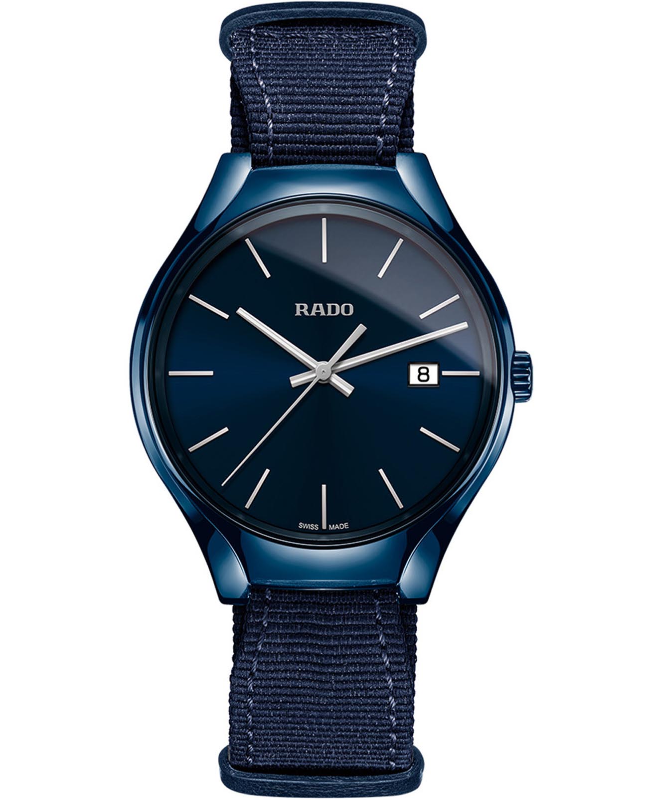 Женские кварцевые швейцарские часы Rado True R27235206. Корпус часов изготовлен из высокотехнологичной керамикиВысокотехнологичная керамикаИнновационный запатентованный Rado материал с гладкой или матовой поверхностью. Керамика за счёт кристаллической структуры обладает повышенной устойчивостью от возникновения царапин. Материал способен принимать температуру тела человека, обеспечивая невероятный комфорт при ношении.. Тканевый ремешок на стандартной застёжке. Сапфировое стеклоСапфировое стеклоПрочный и надёжный материал из кристалла сапфира синтетического происхождения, характеризующийся особой твёрдостью и устойчивостью к царапинам и повреждениям. устойчивое к мелким механическим повреждениям. Класс водозащиты: 50 метров, позволит защитить корпус от случайных брызг или капель дождя. Окошко даты находится в положении 3 часа.